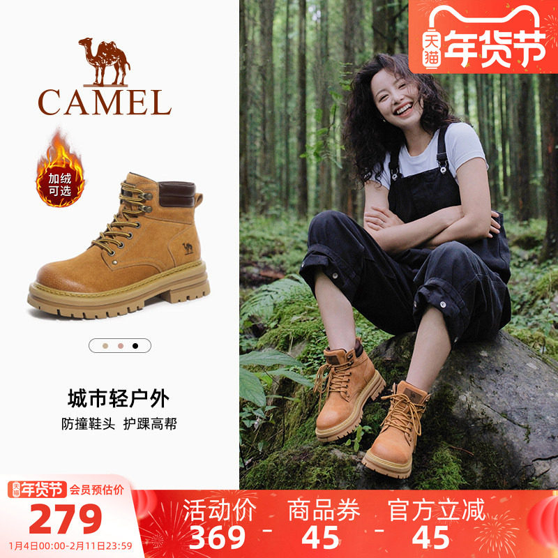 骆驼大黄靴马丁靴女款2025新款英伦风冬季厚底靴子登山鞋工装短靴
