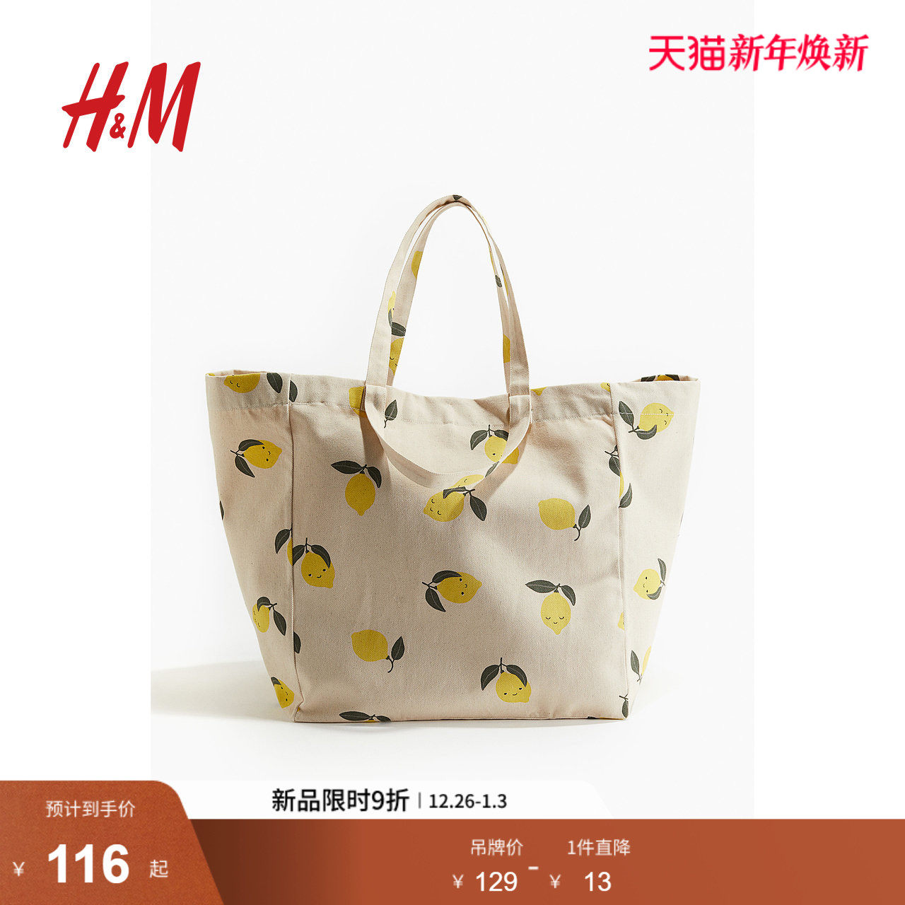 HM女士包袋2025新款帆布包大容量手提包印花单肩包沙滩包1134173