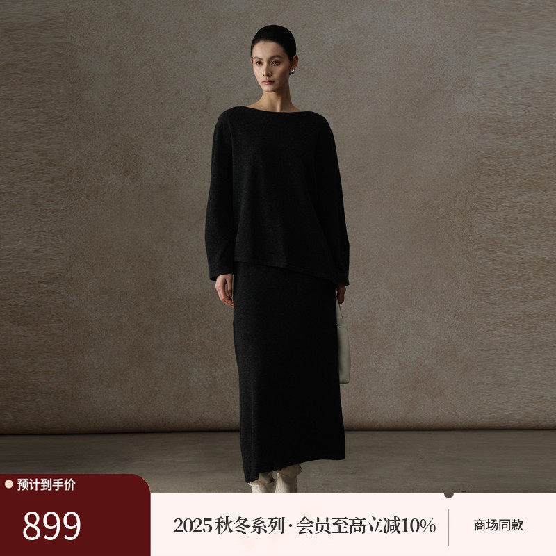 黑标BAIZHUO商场同款25冬新款毛衫+半身裙羊毛针织套装AZ54TZ283