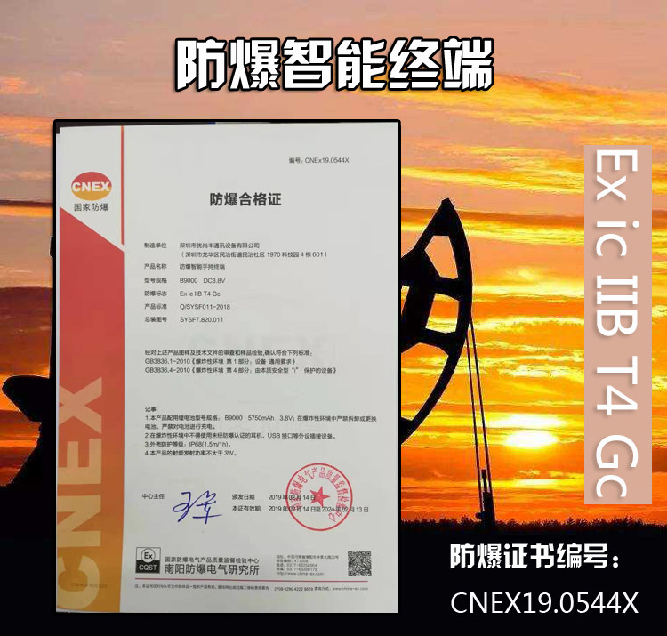 化工防爆智能手机优尚丰 b9000油库三防对讲虹膜燃气全网通4G石油