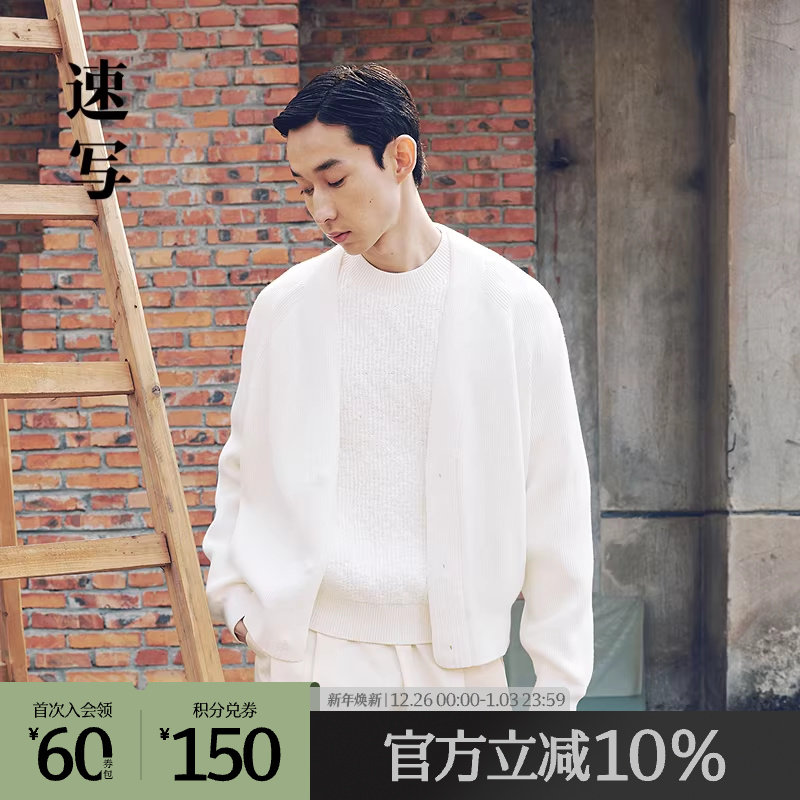 速写outlets奥莱男装25春夏季末折扣新品开襟毛衫v领短款简约潮