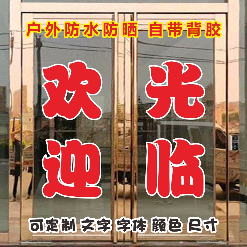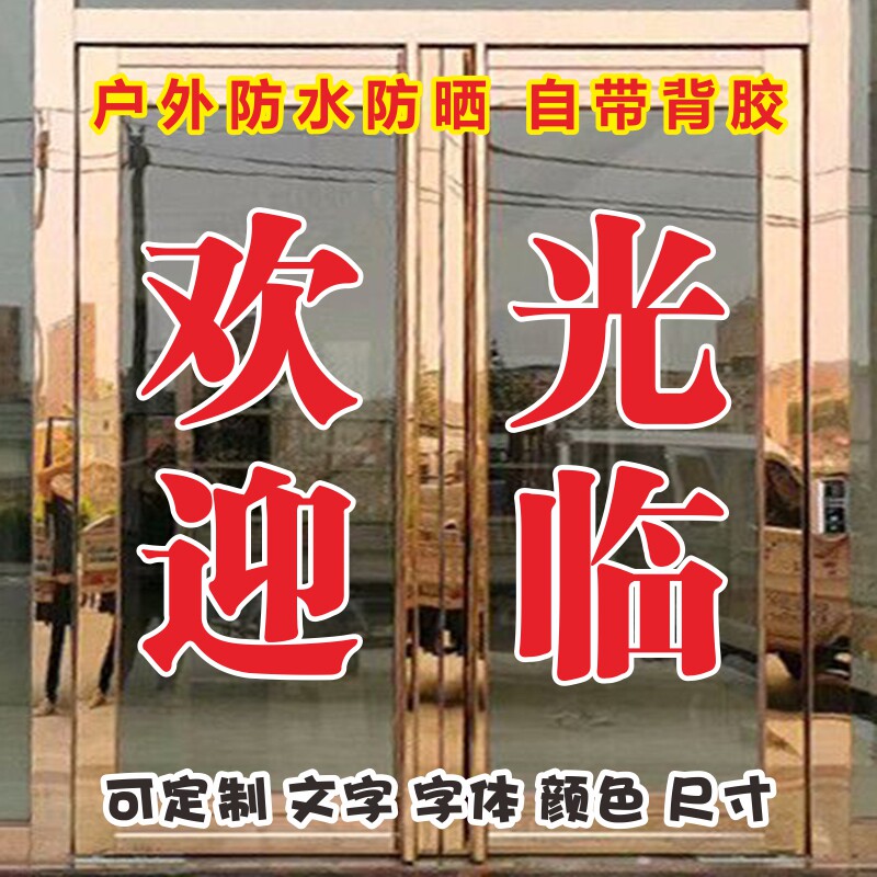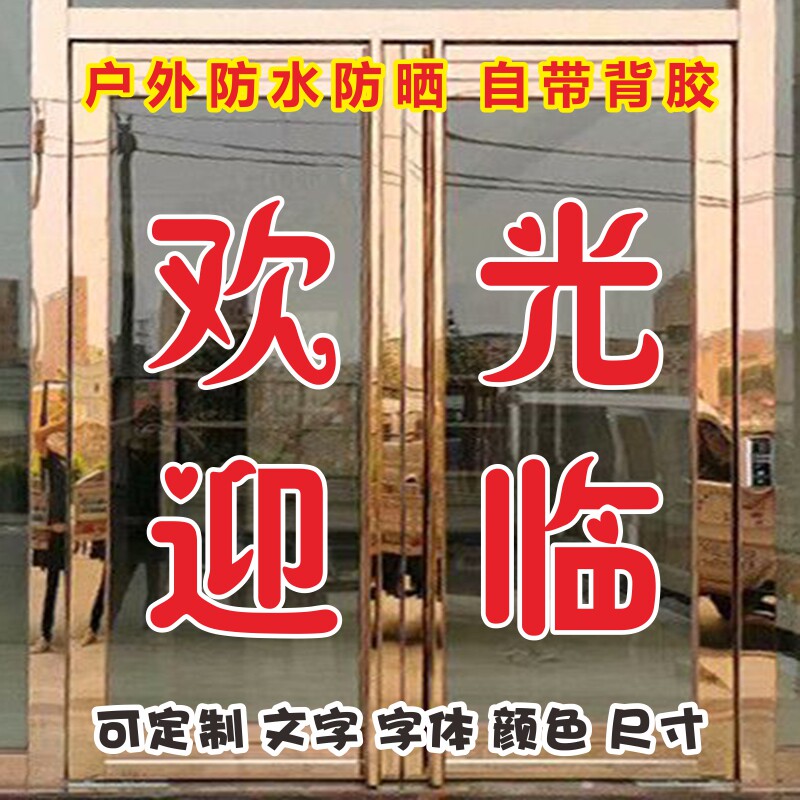 欢迎光临定制做广告字贴纸店铺门面玻璃窗推拉门帖字办公室腰线防撞条电脑刻字自粘