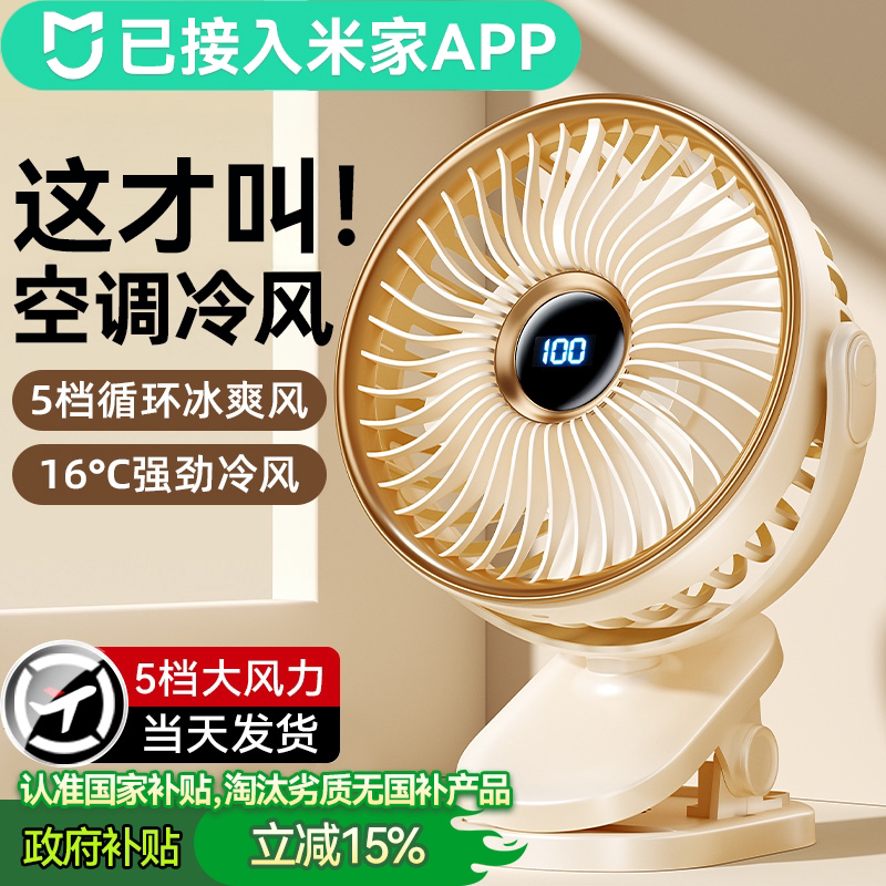 【已接入米家APP】2026新款桌面小风扇夹子静音办公室桌上usb充电风扇制冷小型宿舍床上学生便携迷你超长续航