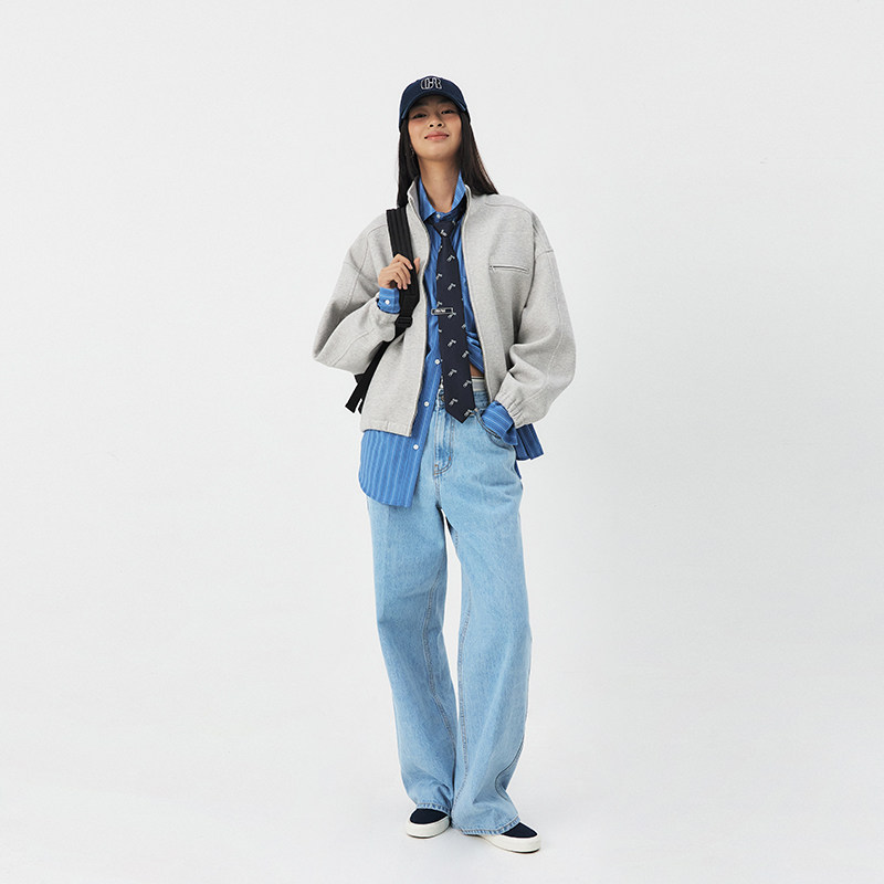 GROVE官方旗舰店明星同款2025PS春季新牛仔长裤复古宽松 GS5DB03J