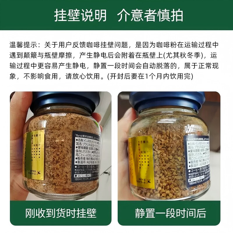 【自营】日本agf咖啡美式黑咖啡无蔗糖速溶咖啡冻干咖啡粉80g*2瓶