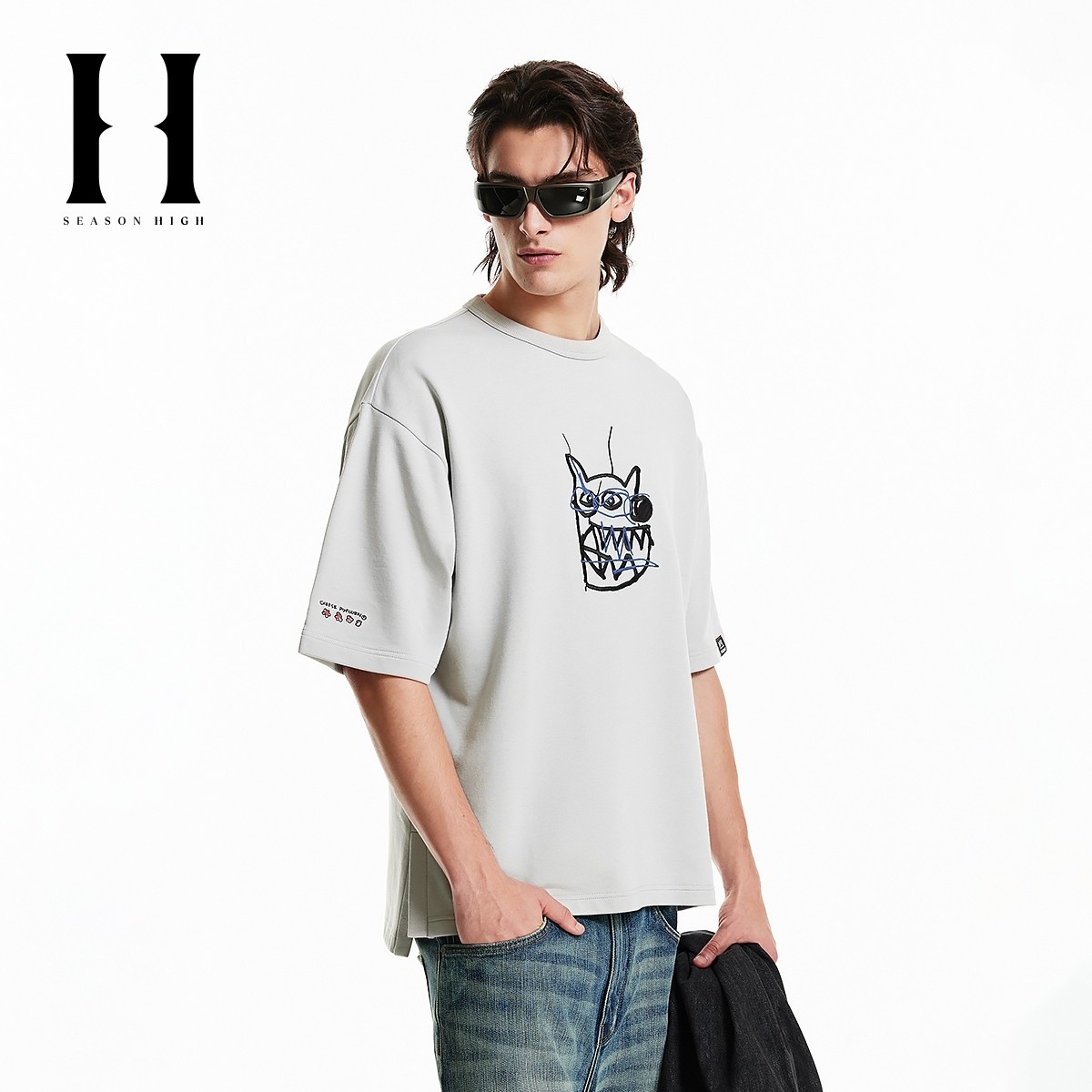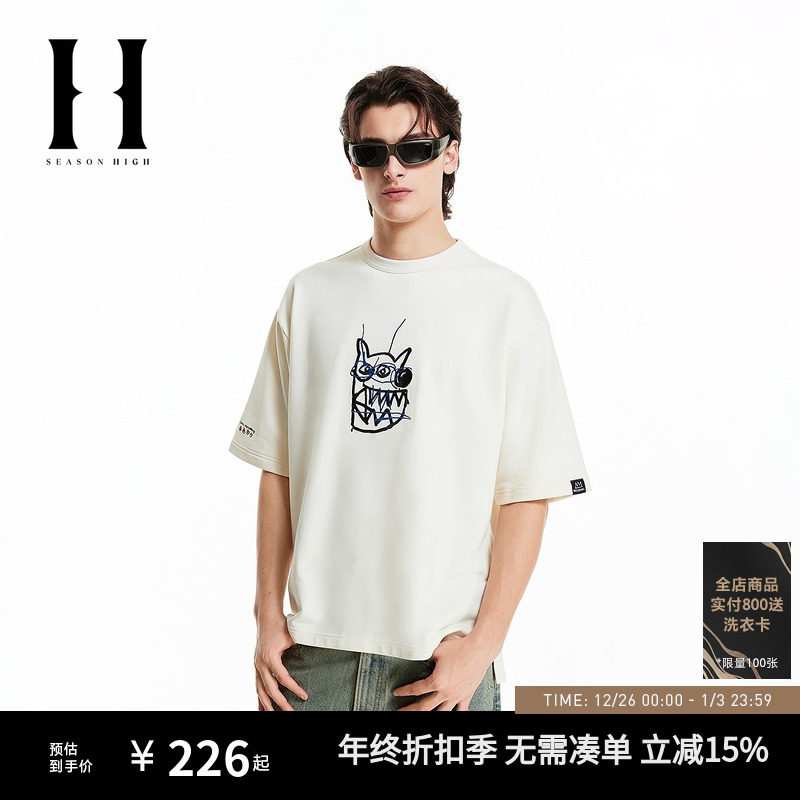 【BSQ联名】SEASON HIGH2025年秋季T恤宽松刺绣贴布男装短袖男款