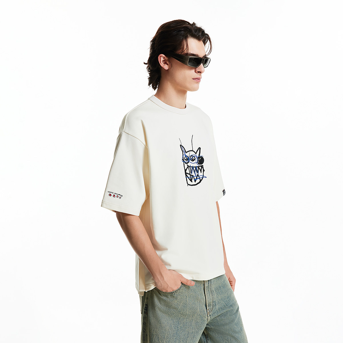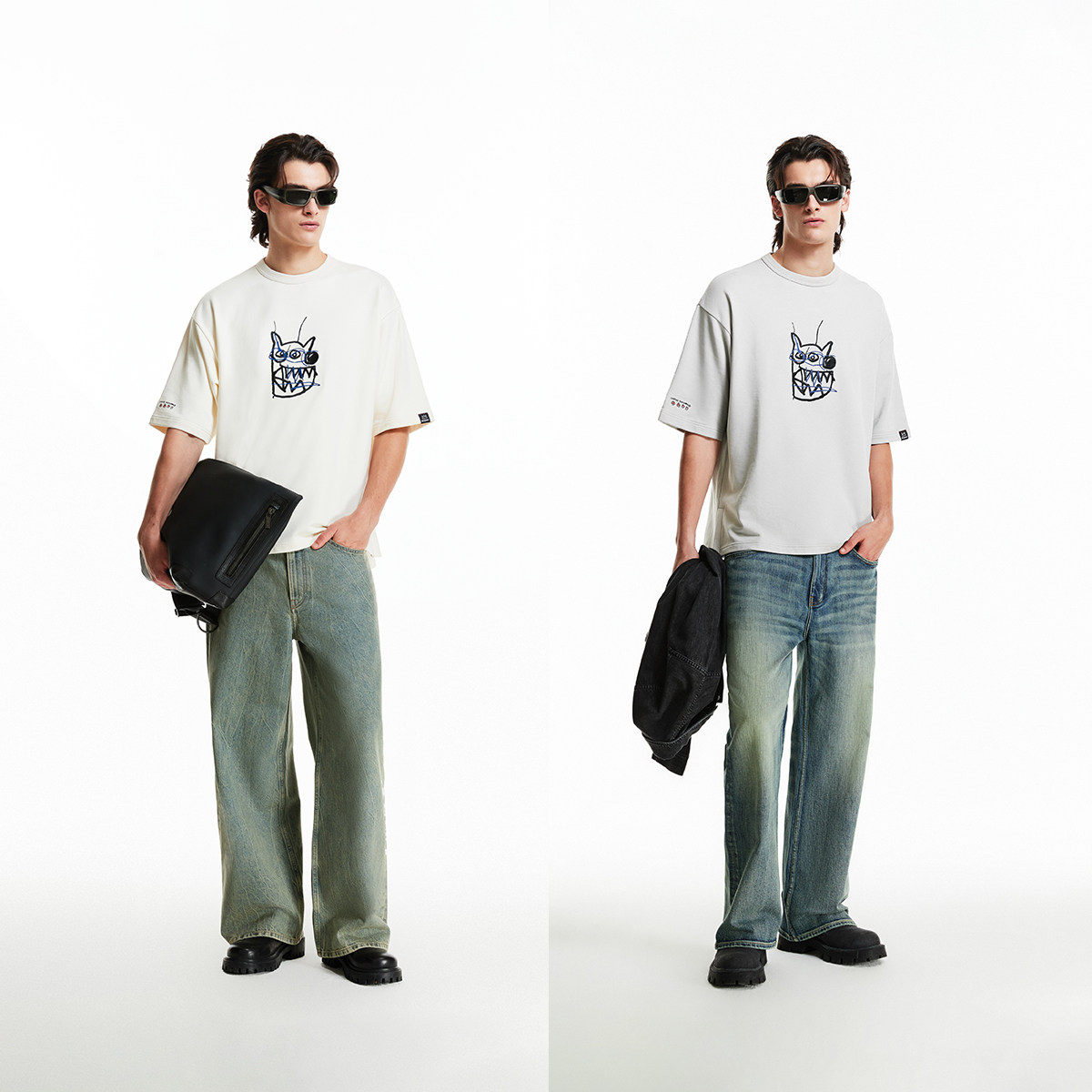 OVERSIZED版型;罗纹圆领;胸前刺绣图案