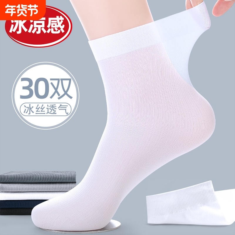 男士丝袜夏季薄款防臭冰丝白色中筒袜夏天超薄款黑色皮鞋抗菌吸汗