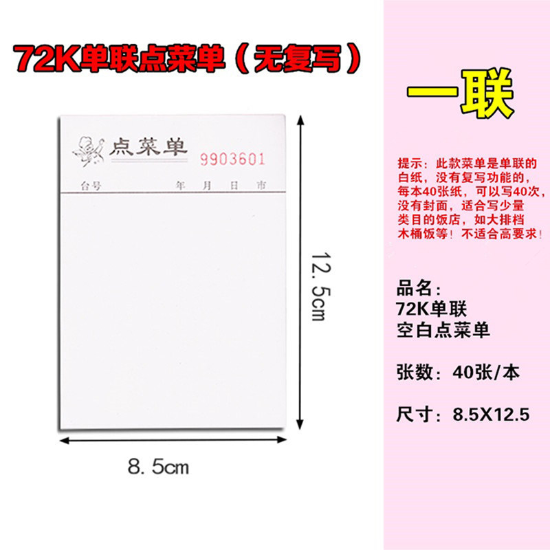 厨师页面菜本版面小本单联点餐空白烧烤摊点菜酒吧结账火锅店带格