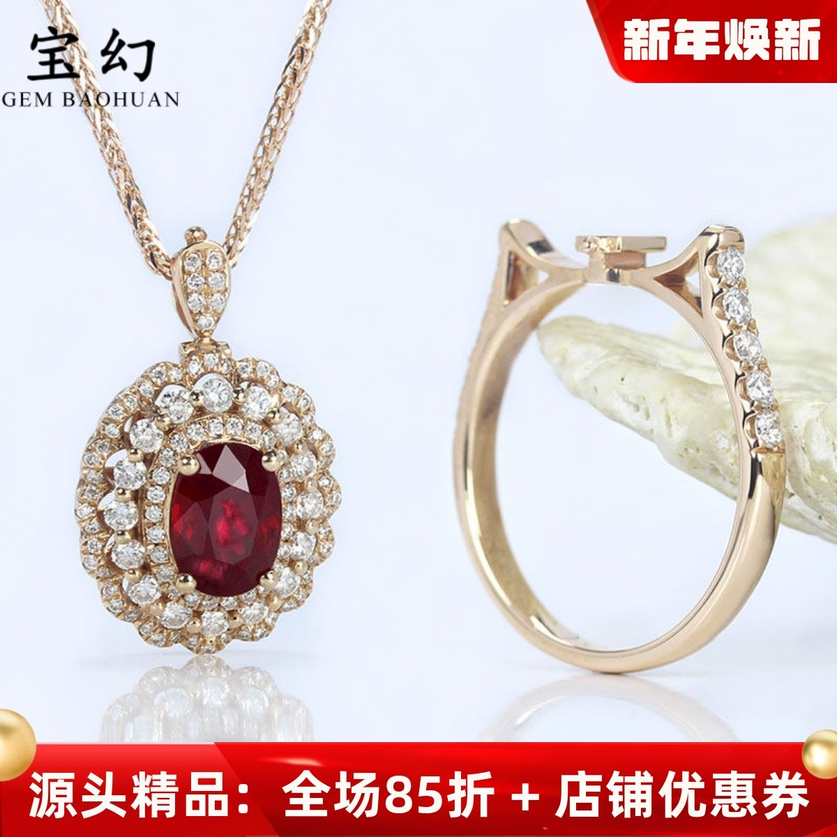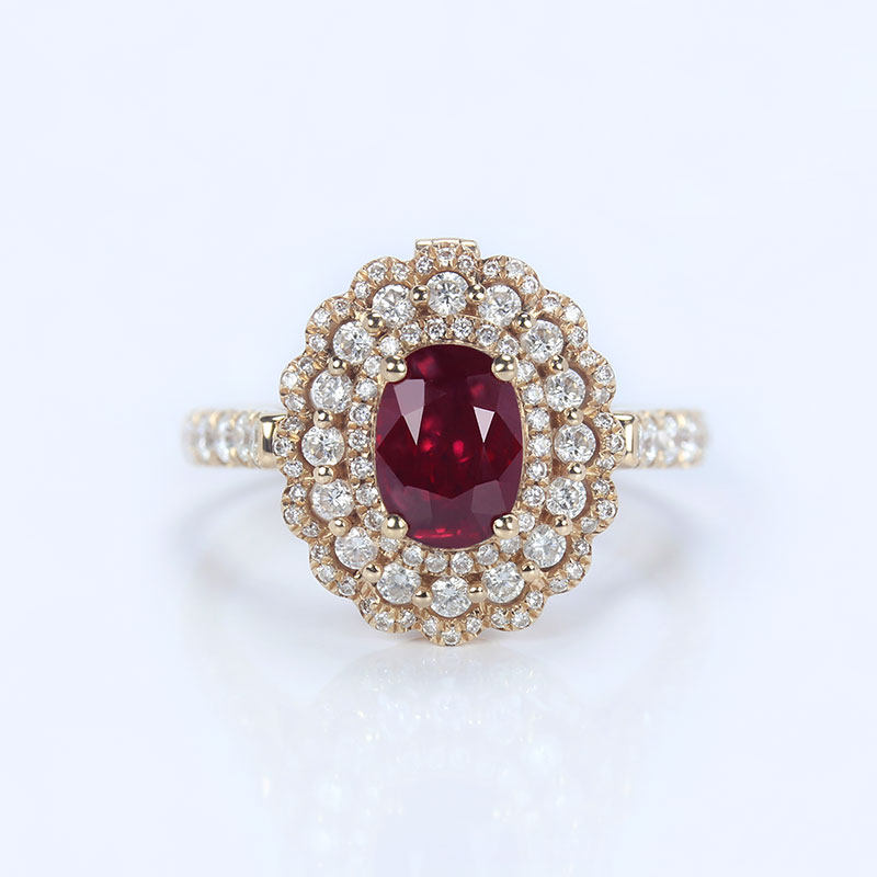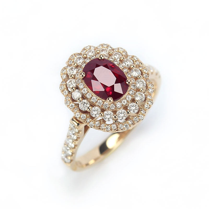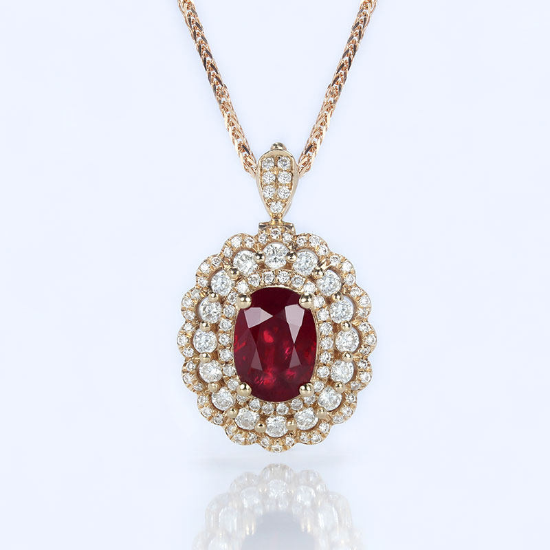 豪华1克拉缅甸天然鸽血红宝石戒指两用款 18K玫瑰金钻石吊坠女款