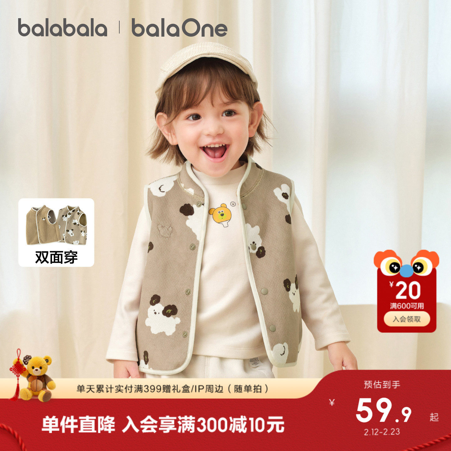巴拉巴拉童装儿童马甲双面穿男女宝宝衣服秋冬装2025年新款羊羔绒