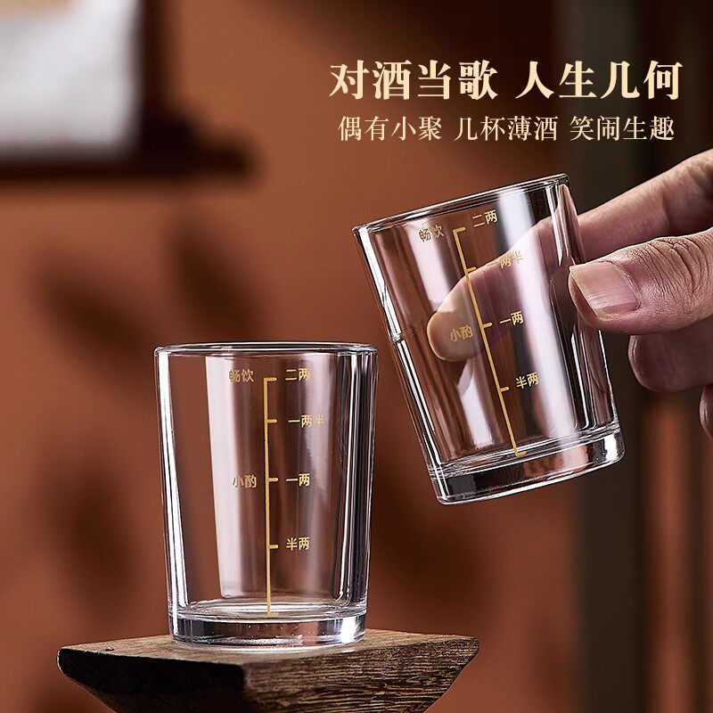 青苹果水晶玻璃白酒杯二两杯家用小酒杯带刻度高档饭店烈酒杯一两