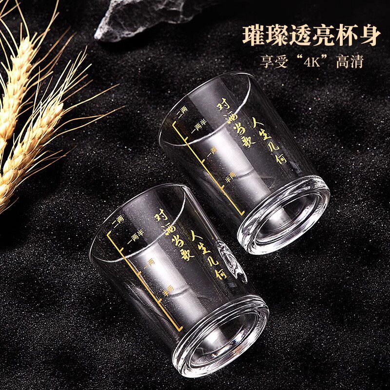 中式家用玻璃白酒杯礼盒套装一口杯烈酒杯分酒器分酒壶小号高脚杯