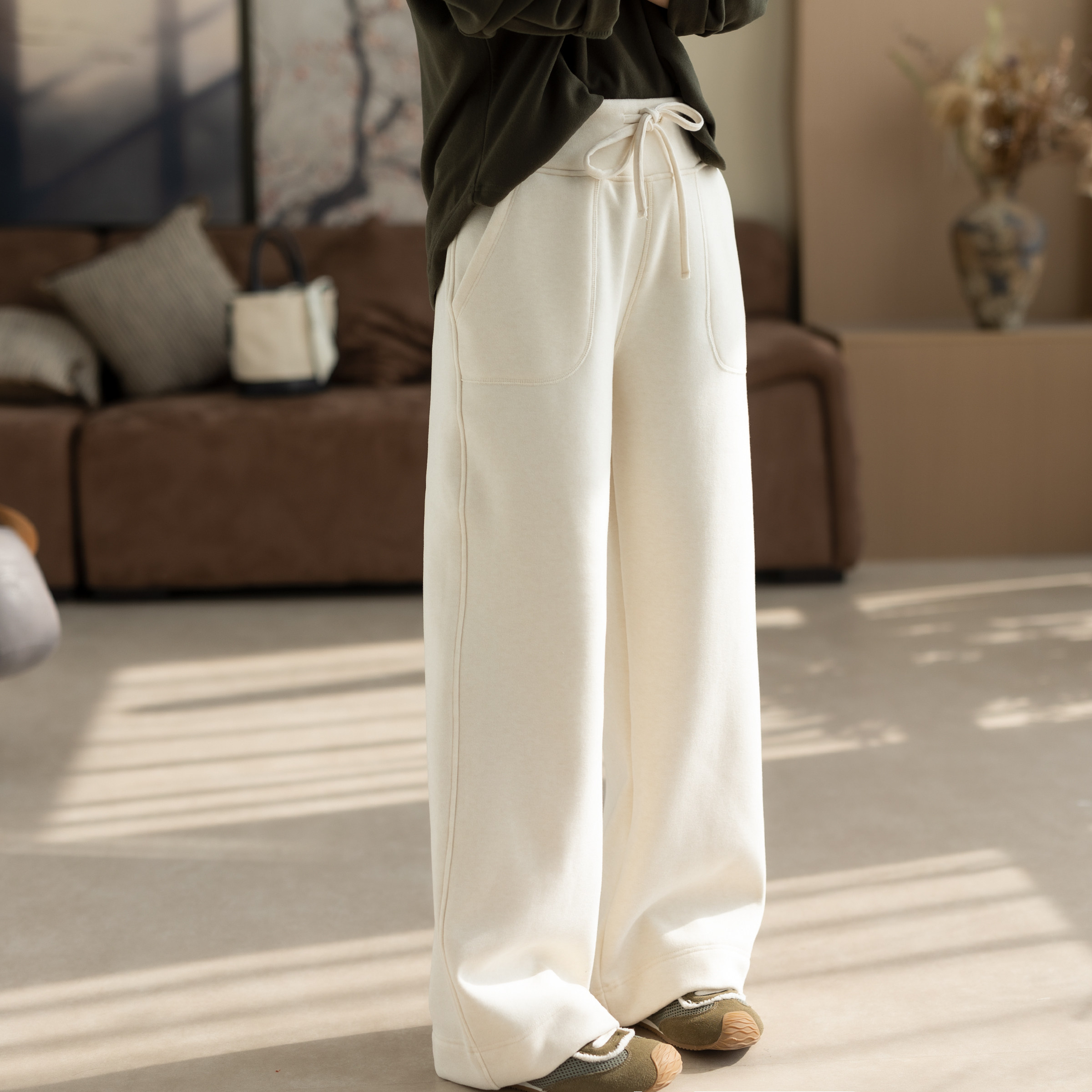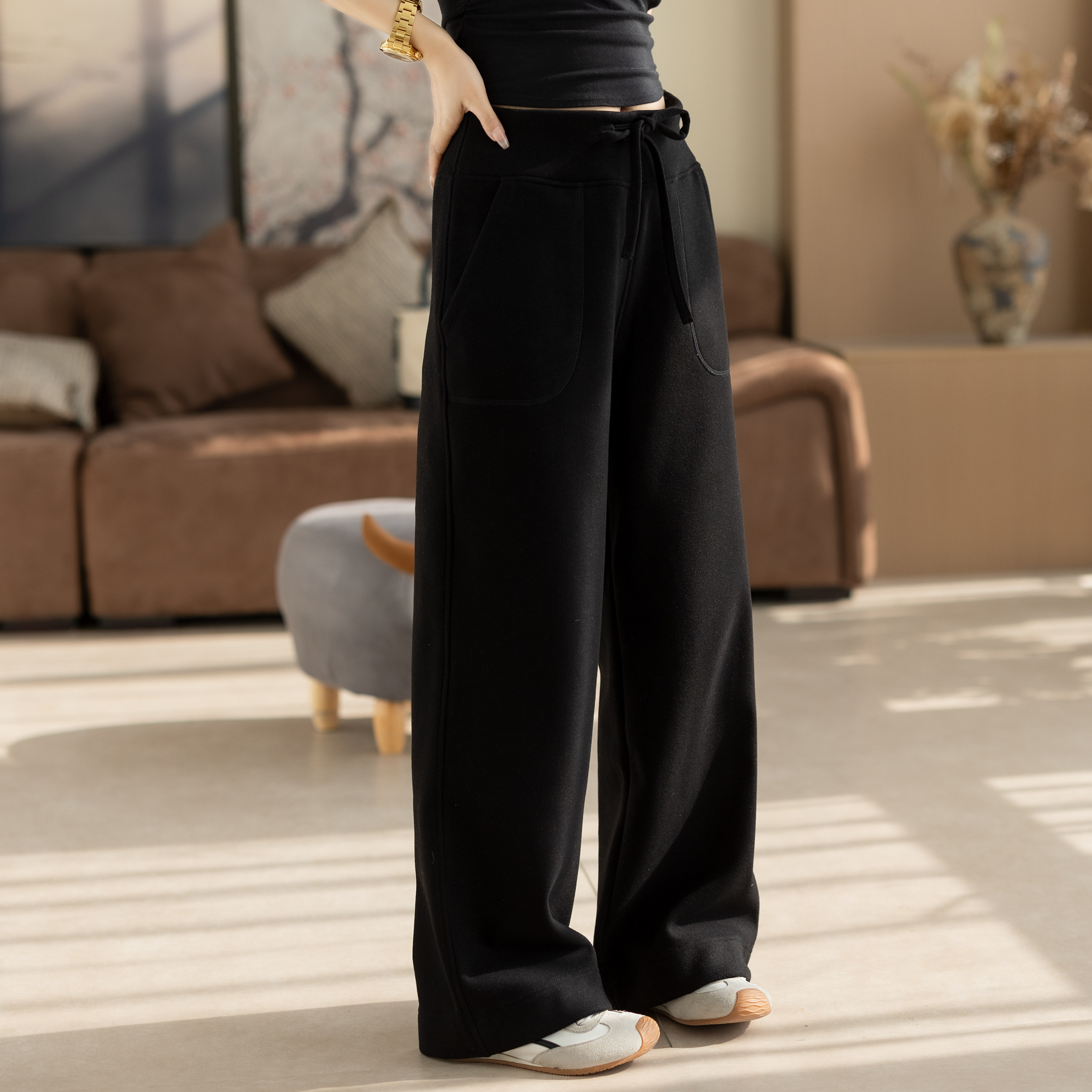 咖咪羽4.2%绵羊毛高腰云朵裤2025秋冬款加绒休闲运动显瘦阔腿长裤