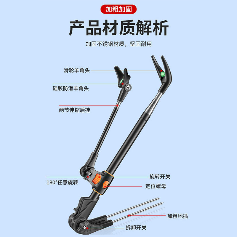 牧马人新款支架不锈钢炮台架钓鱼竿架万向地插加粗加硬手竿支撑架