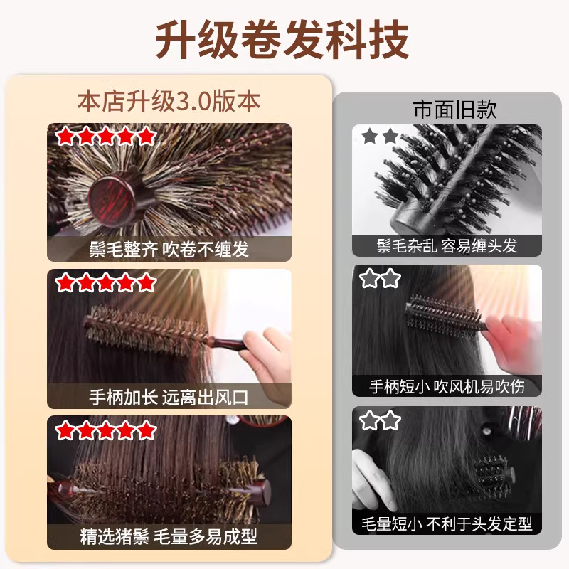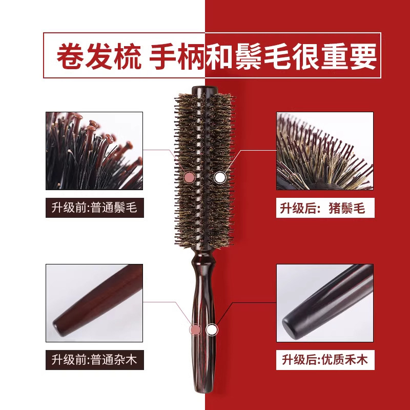 卷发梳猪鬃毛圆筒滚梳家用发廊专业男女士专用烫发吹头发造型梳子