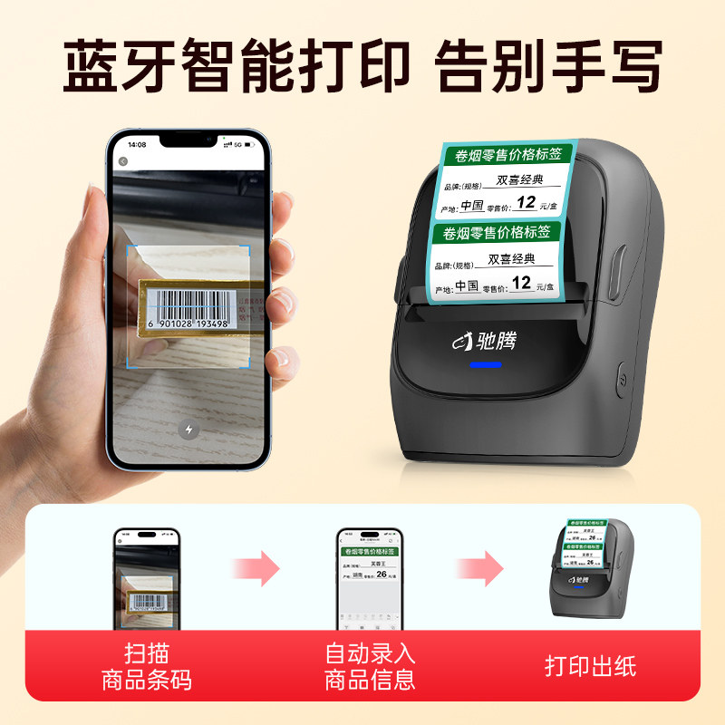 驰腾221B商超货架标签打印机蓝牙智能便携式手持打印机不干胶贴纸便利店商品商场超市价签热敏三防彩色标签纸