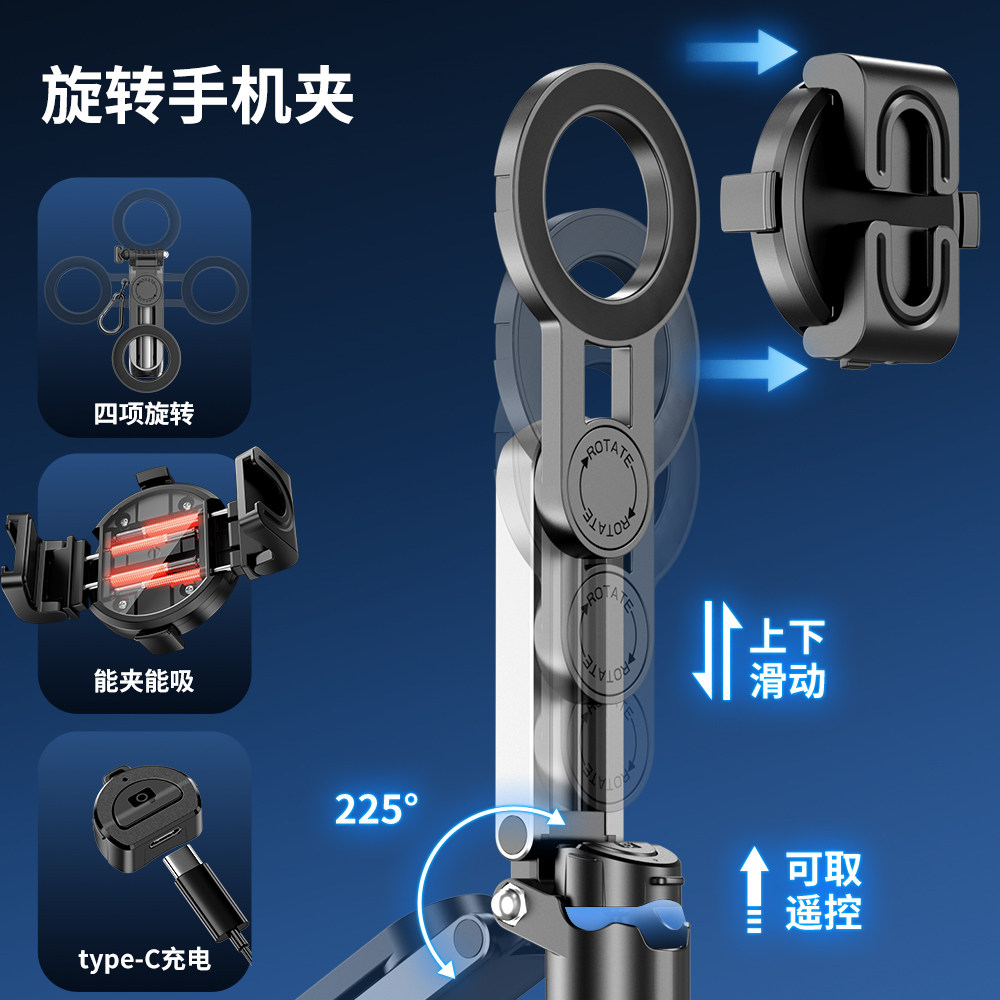 2026新款迷你磁吸自拍杆便携360度旋转三脚架蓝牙手机助拍器旅游拍照vlog拍摄支架通用手持自拍神器