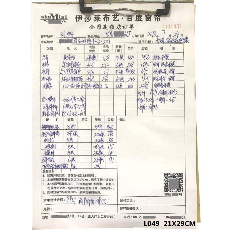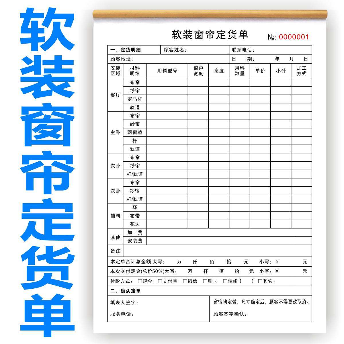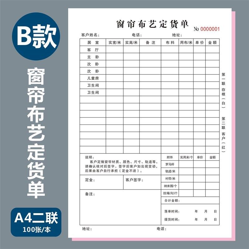极速窗帘订本 软装布艺定 收据 窗帘订货二联 三Y联 窗帘加工