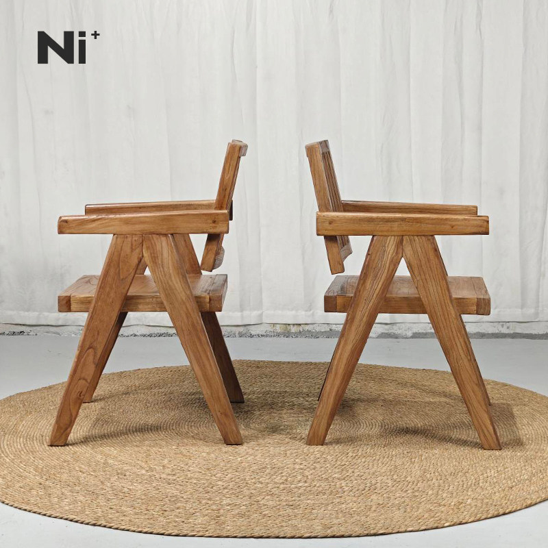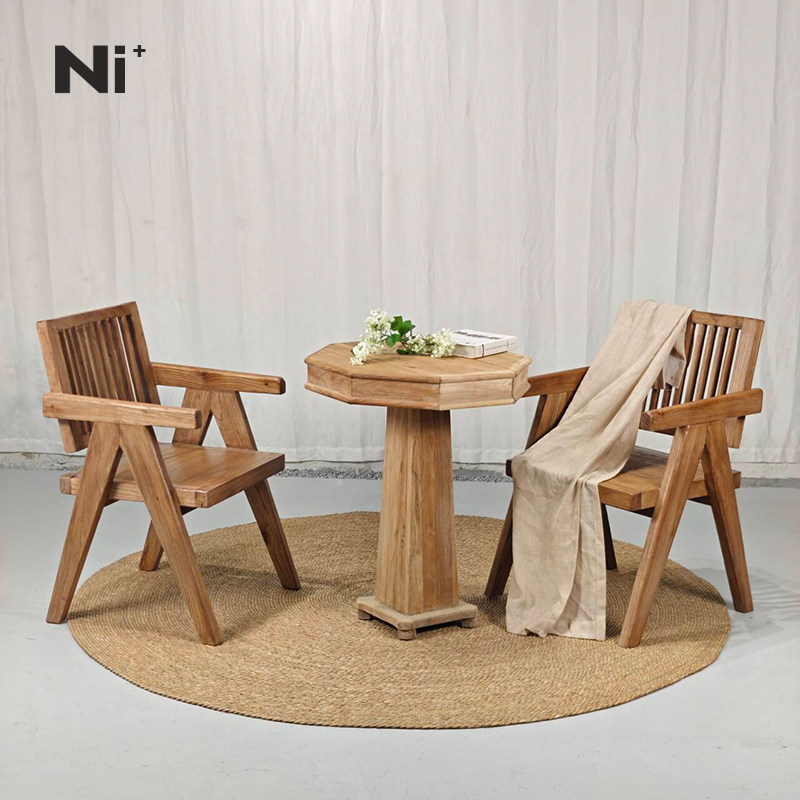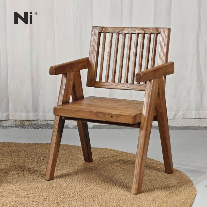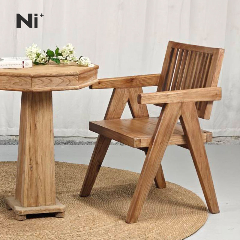 Ni+尼家侘寂风餐椅中古民宿庭院实木休闲椅老榆木茶椅餐厅扶手椅