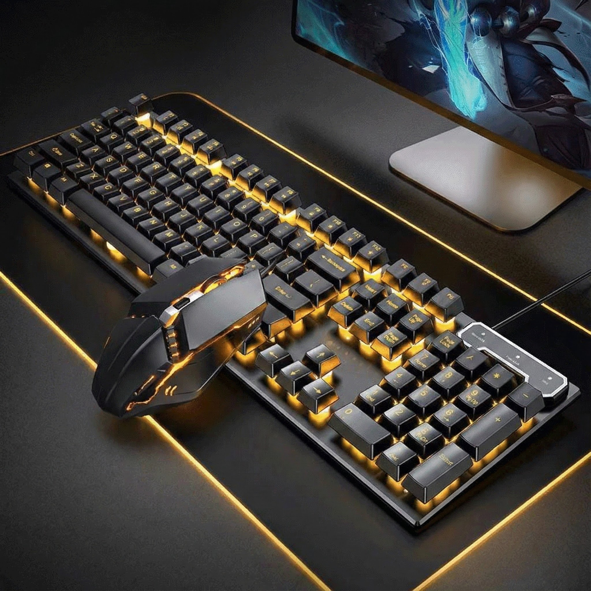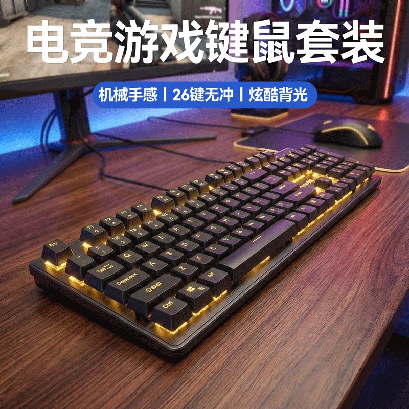 机械手感有线键盘静音台式电脑笔记本电竞游戏办公打字鼠标套装男
