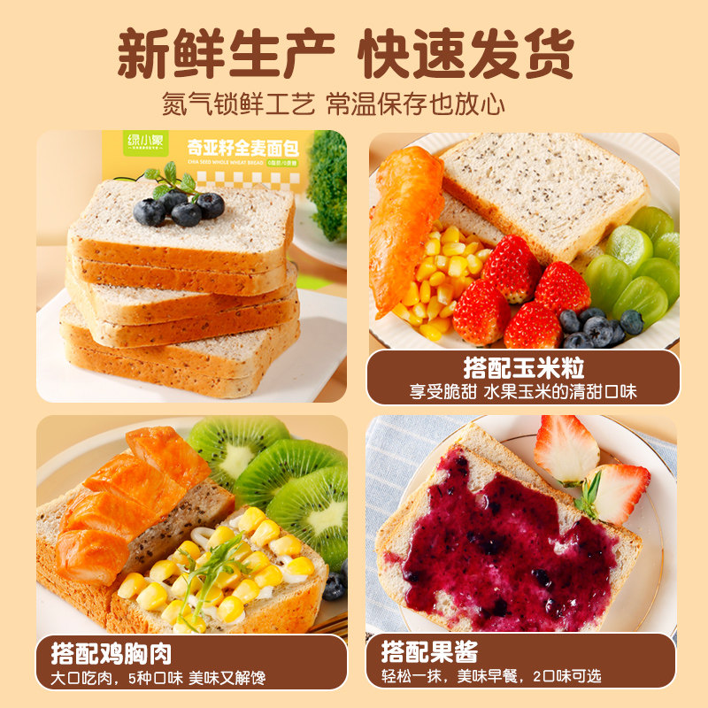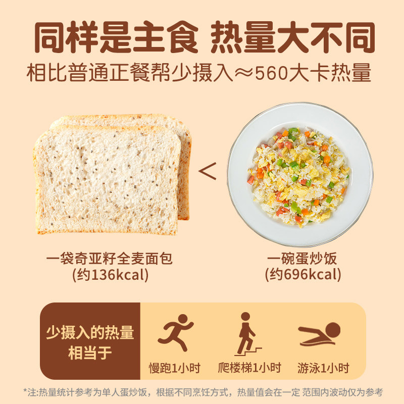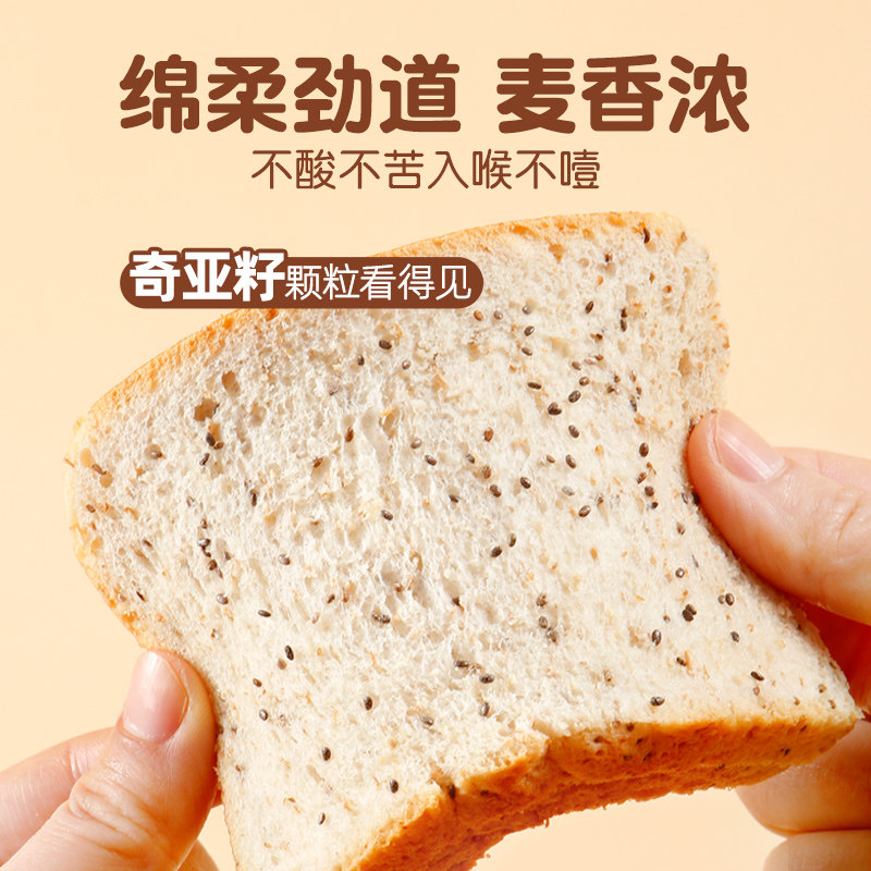 奇亚籽0低脂全麦黑麦面包无糖精减饱腹代餐零食吐司切片营养早餐