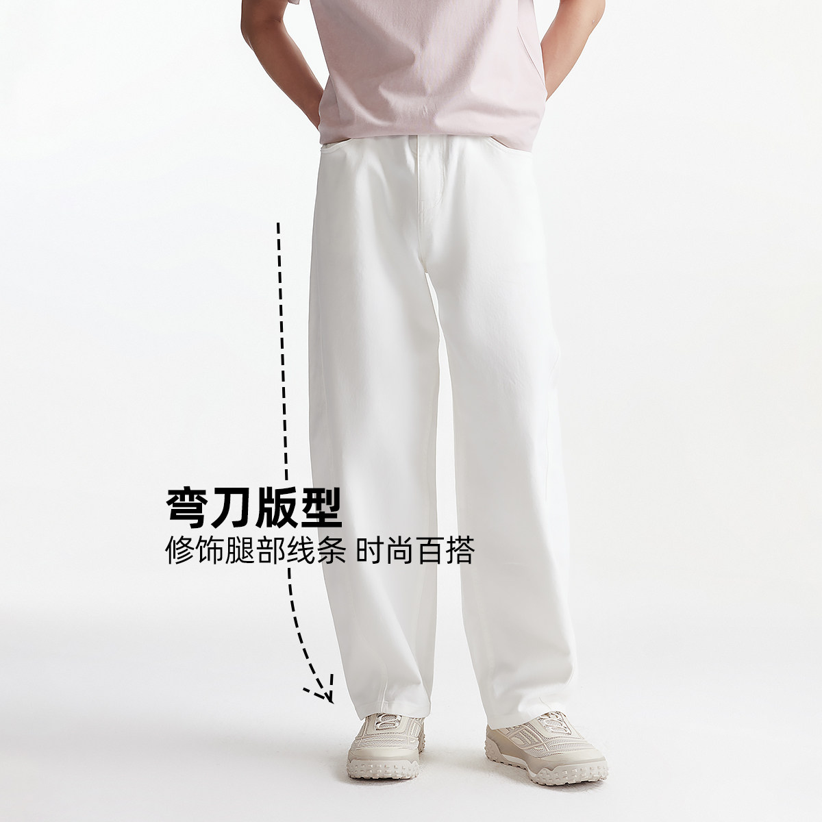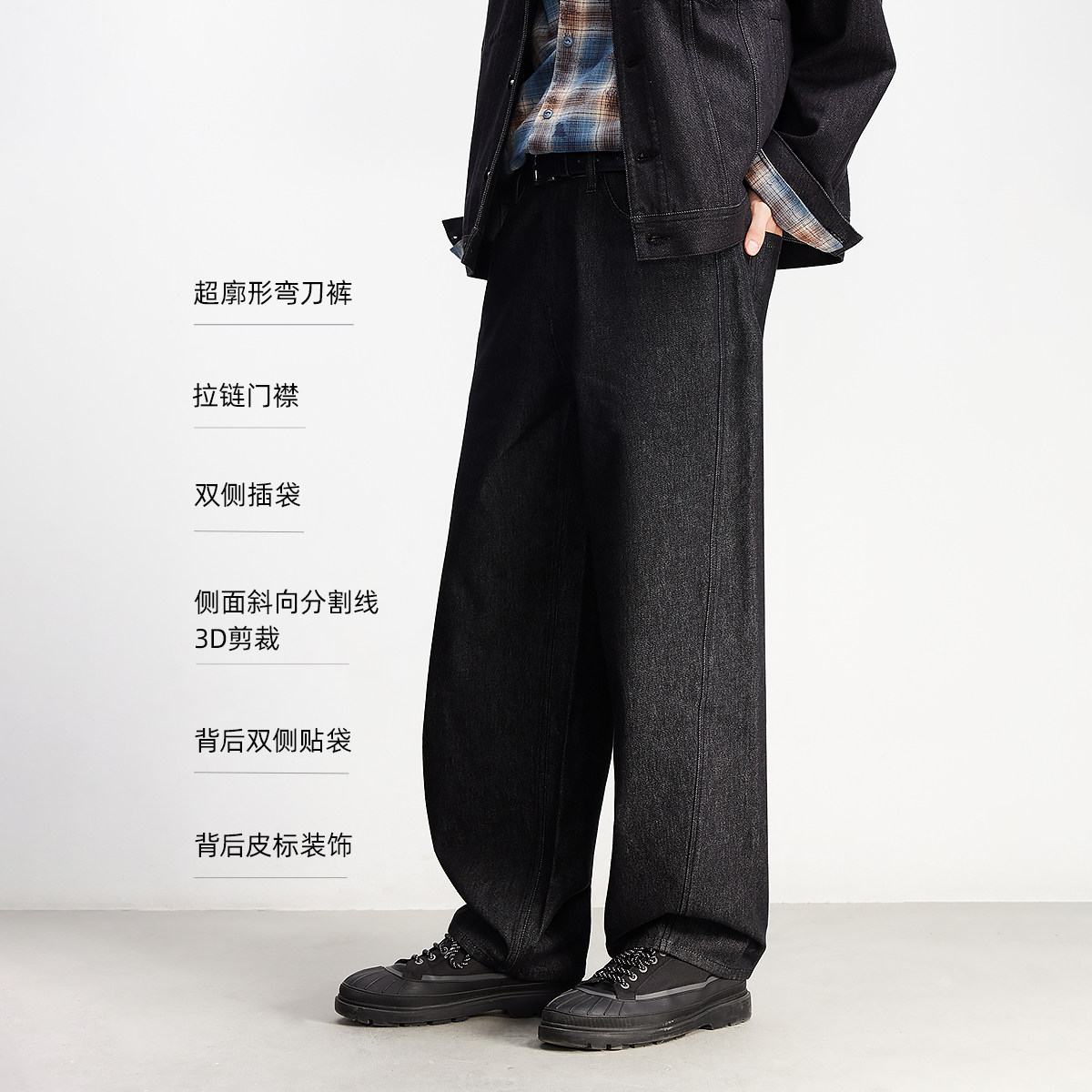 王安宇同款森马牛仔裤男做旧复古阔感弯刀裤宽松弧形裤2025冬新款
