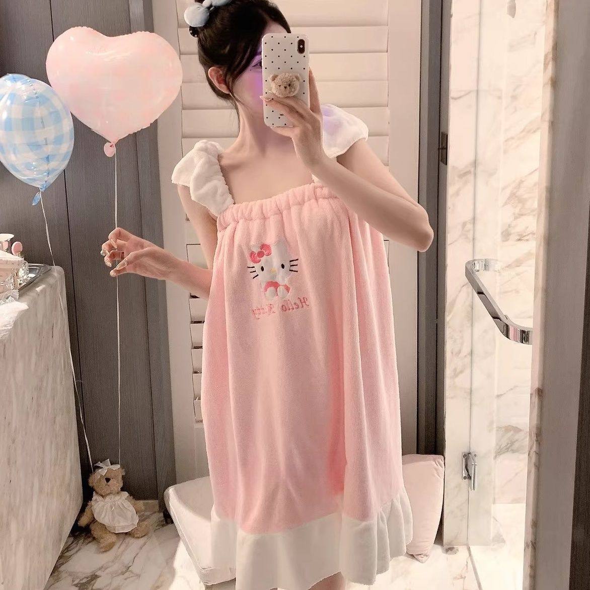 Hellokitty吊带浴裙可穿抹胸吸水毛巾刺绣双肩洗澡浴袍式公主系列