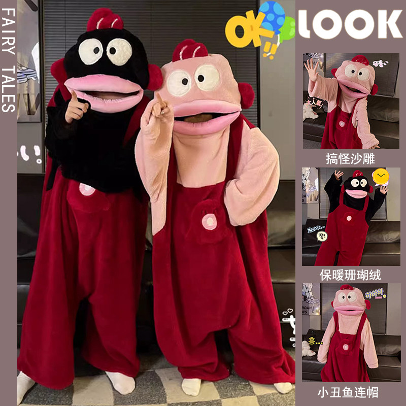 丑鱼睡袍珊瑚绒睡衣女款2025新款秋冬季男厚情侣可外穿连体家居服