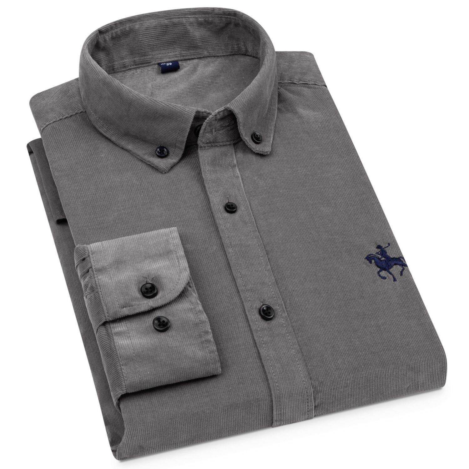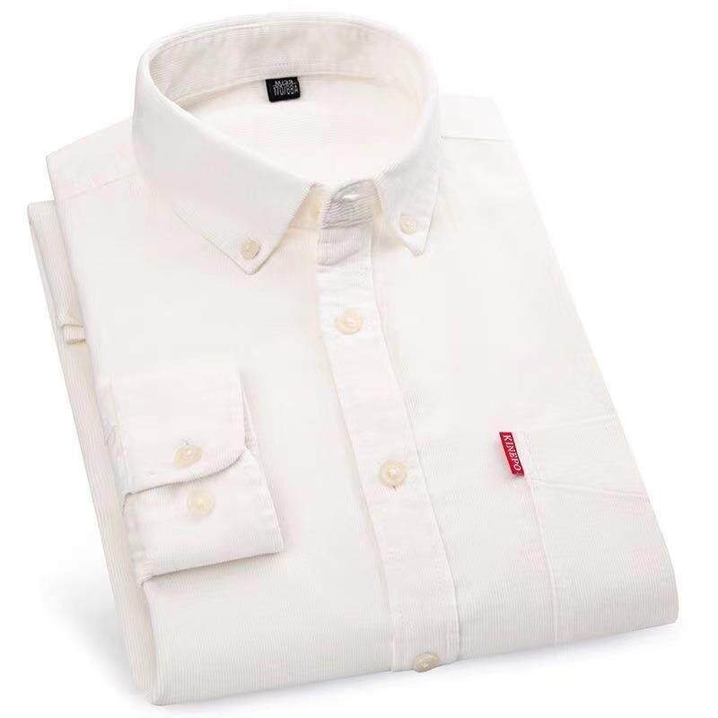秋冬100%纯棉灯芯绒衬衫男士长袖休闲衬衣青年中年宽松大码爸爸装