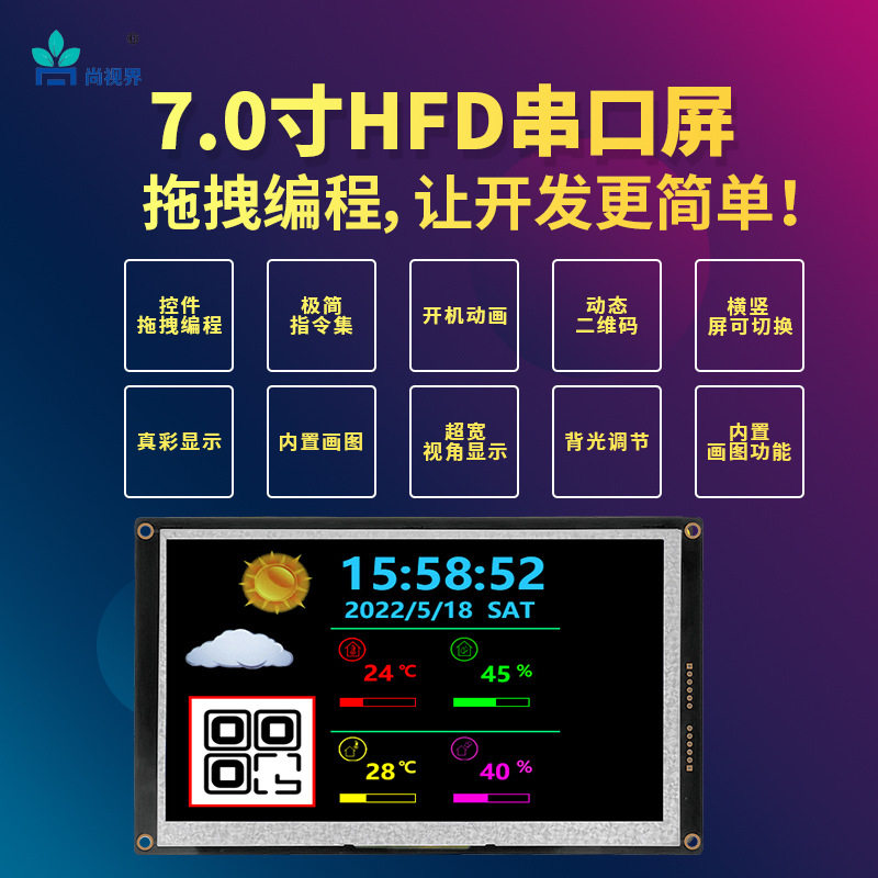 尚视界HF系列UART-485串口屏7寸工业控制小家电人机交互个人相册
