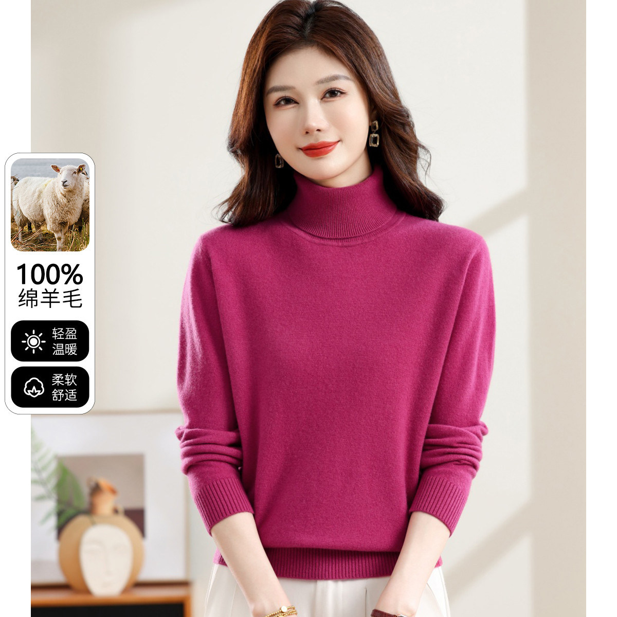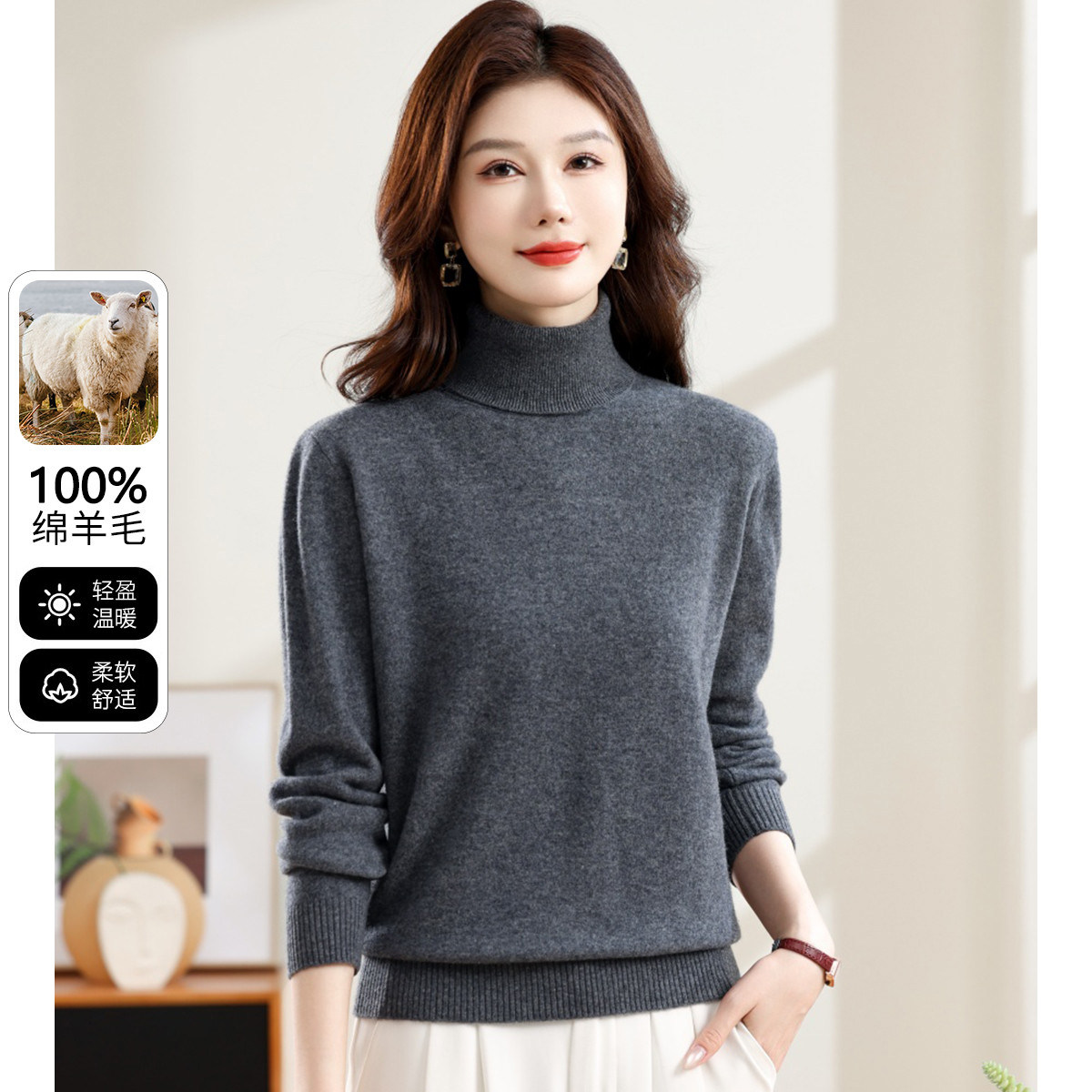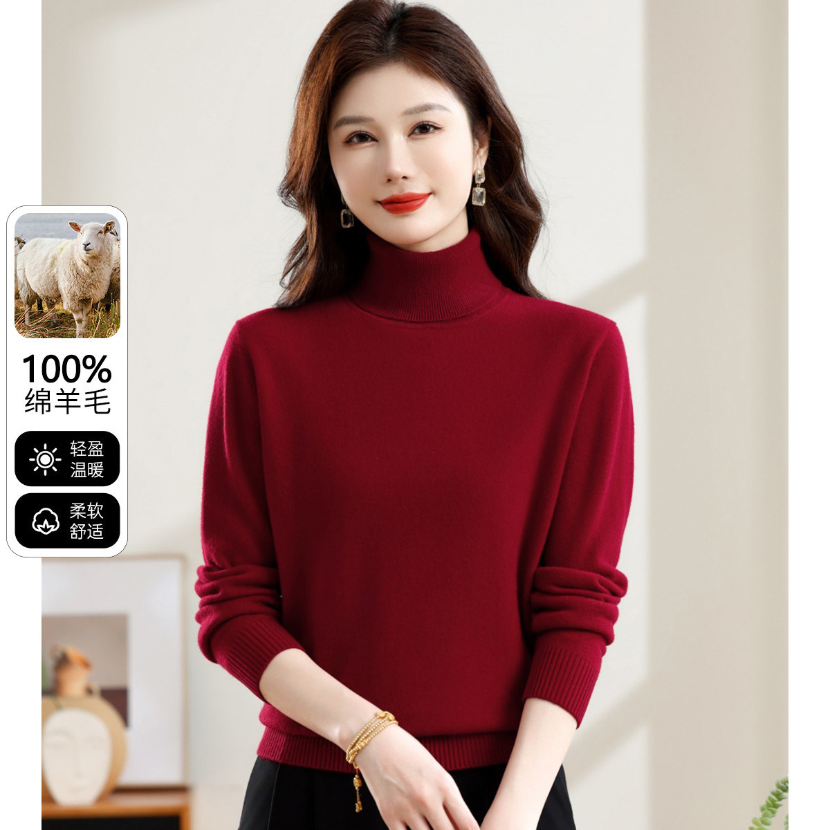 恒源祥羊毛衫女式毛衣新款半高领毛线衣春秋官方正品针织衫打底衫
