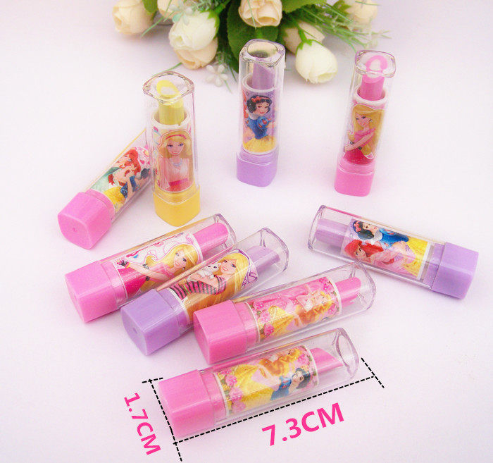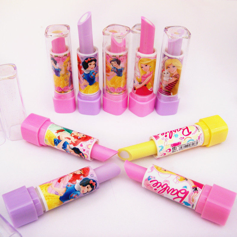 迪士尼 芭比娃娃口红橡皮擦公主小学生旋转橡皮 可爱创意奖品礼品