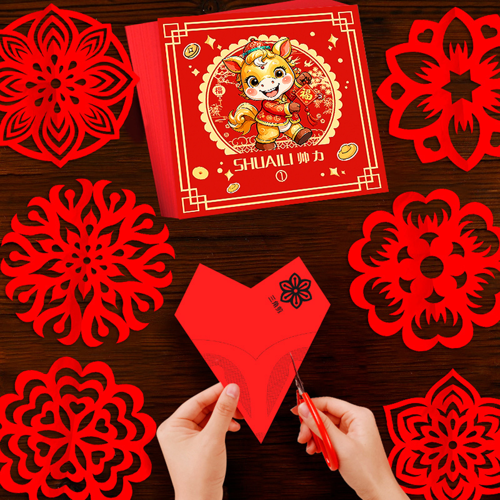 2026马年新年春节窗花剪纸中国风彩纸手工纸儿童折纸专用纸张小学生手工工具套装diy制作新年材料包底稿图案