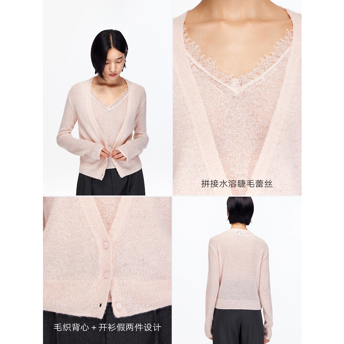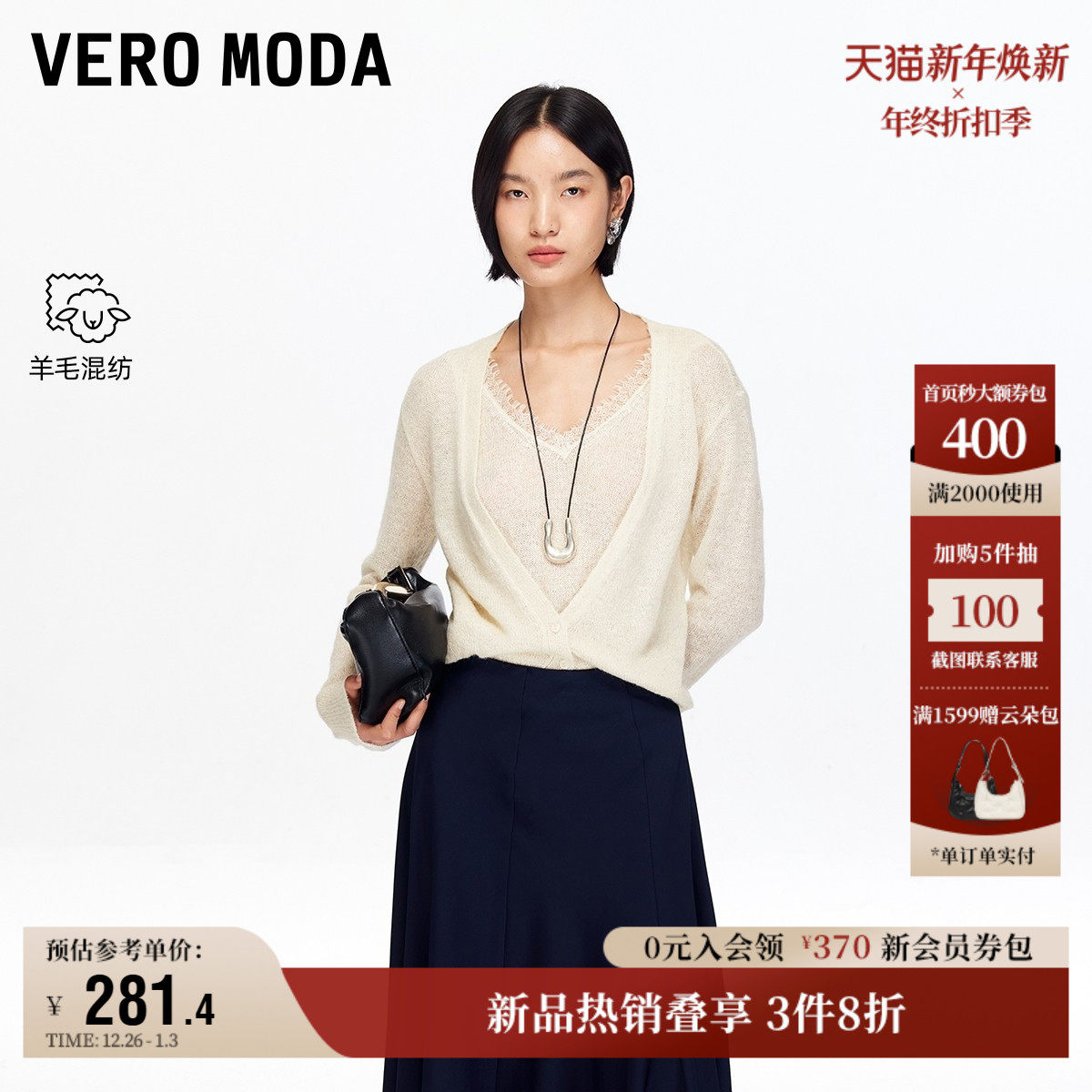 Vero Moda奥莱针织衫女2025秋冬新款含绵羊毛马海毛假两件慵懒