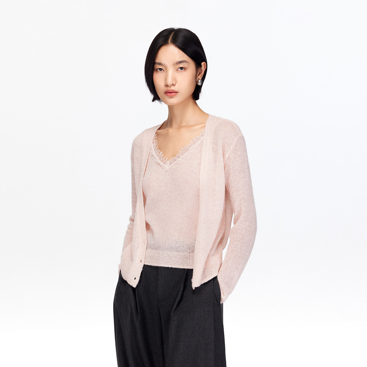 新款羊毛开衫外套女针织打底衫V领2025年春季羊绒外搭短款毛衣女