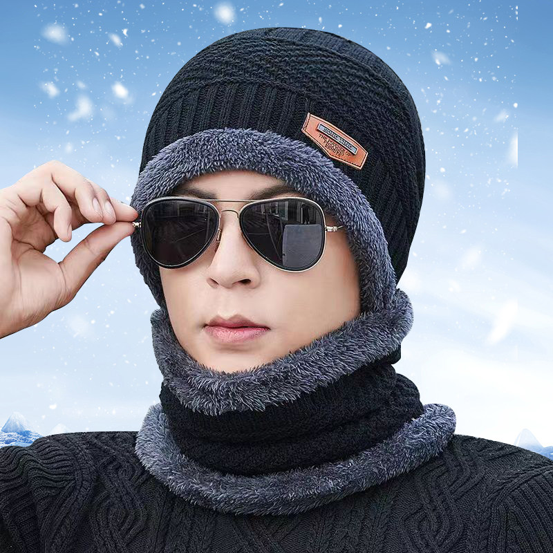 帽子男士冬天户外保暖秋冬针织帽加绒加厚围脖防风两件套防寒零下
