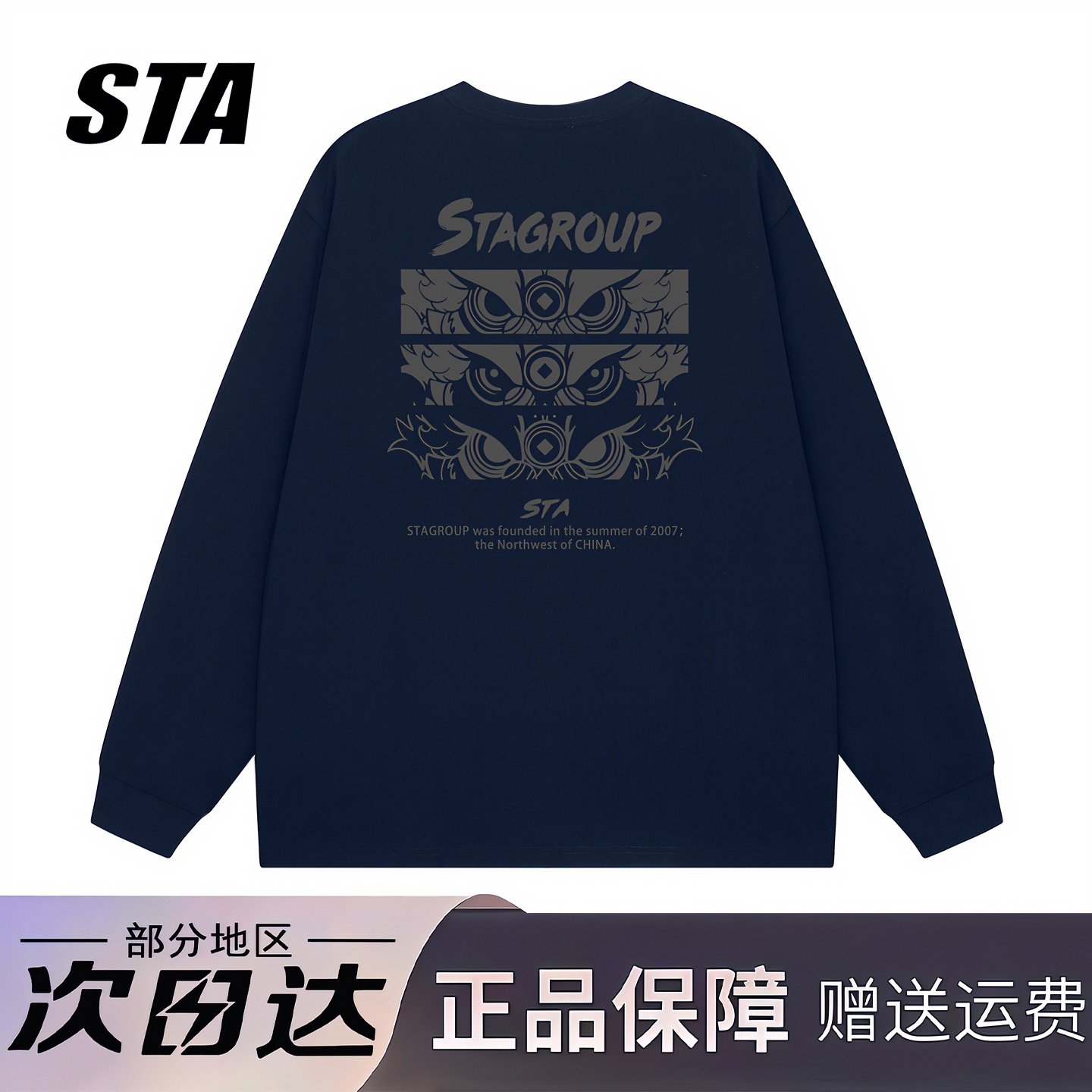 STA旗舰店潮牌醒狮印花长袖男士秋季美式复古高街重磅纯棉卫衣