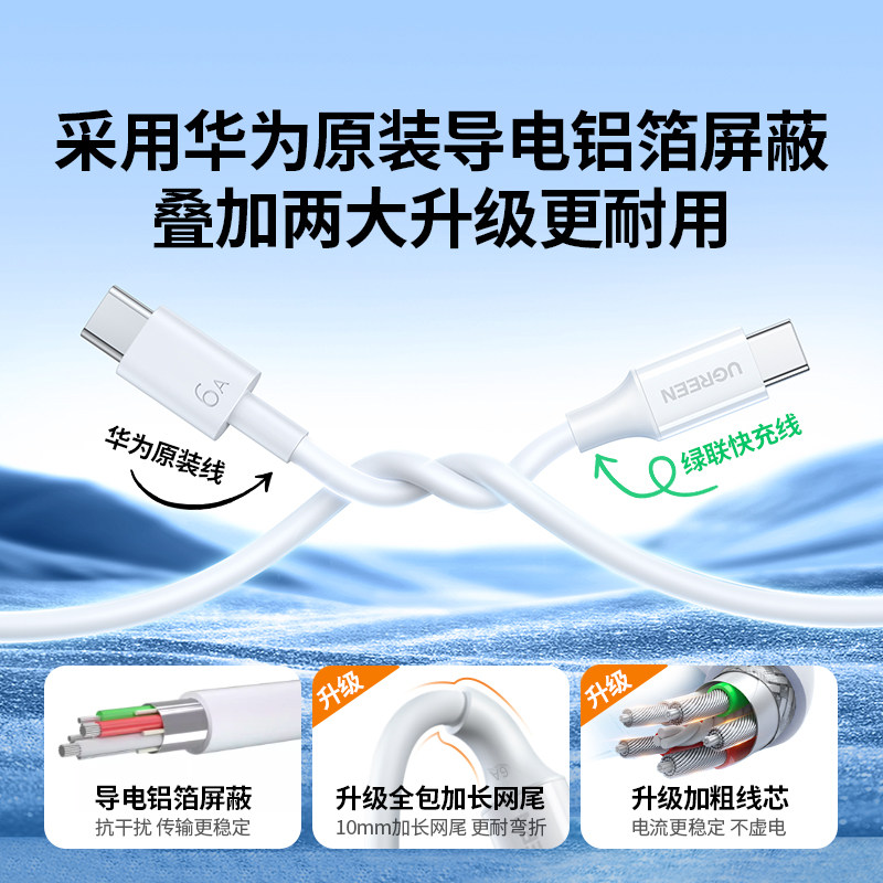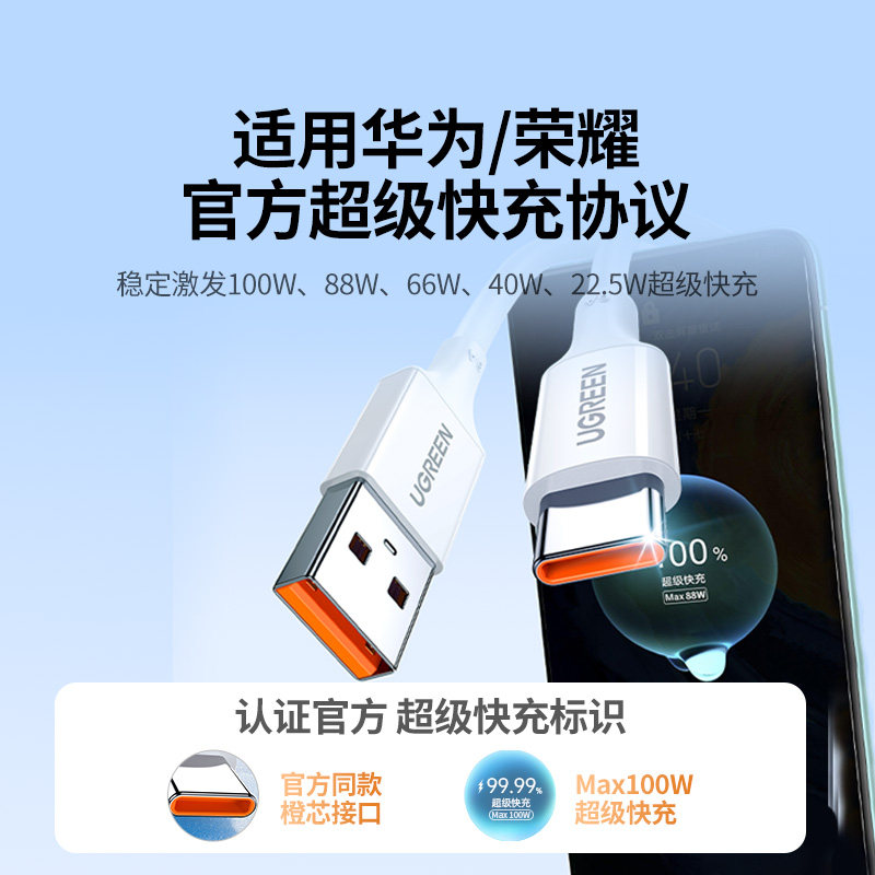 绿联typec数据线适用华为mate70荣耀小米usb安卓100W手机充电线