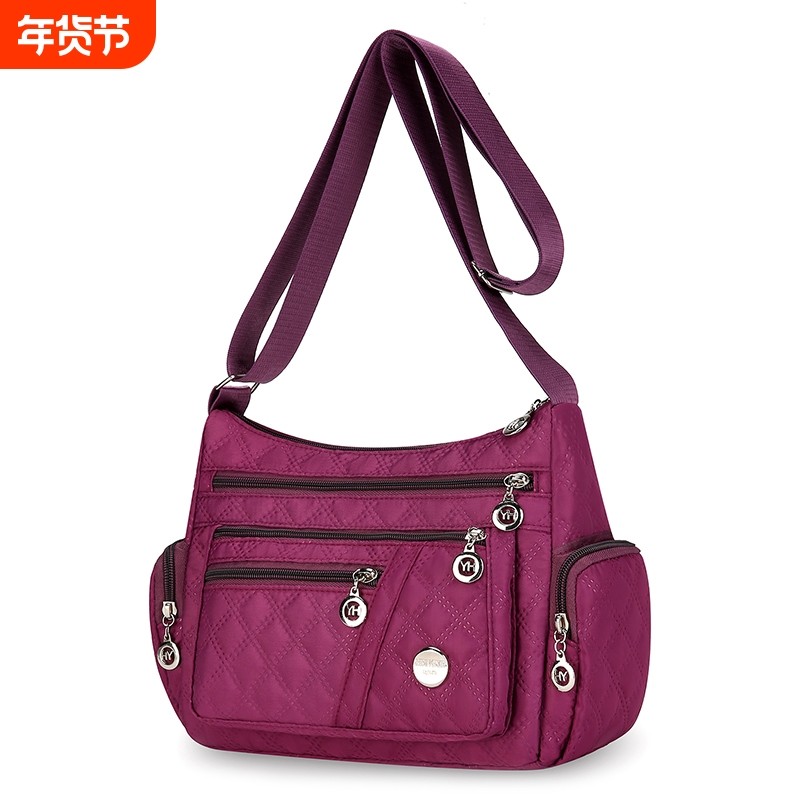 中老年尼龙的女士妈妈包女大容量新款牛津布单肩斜挎包休闲红色