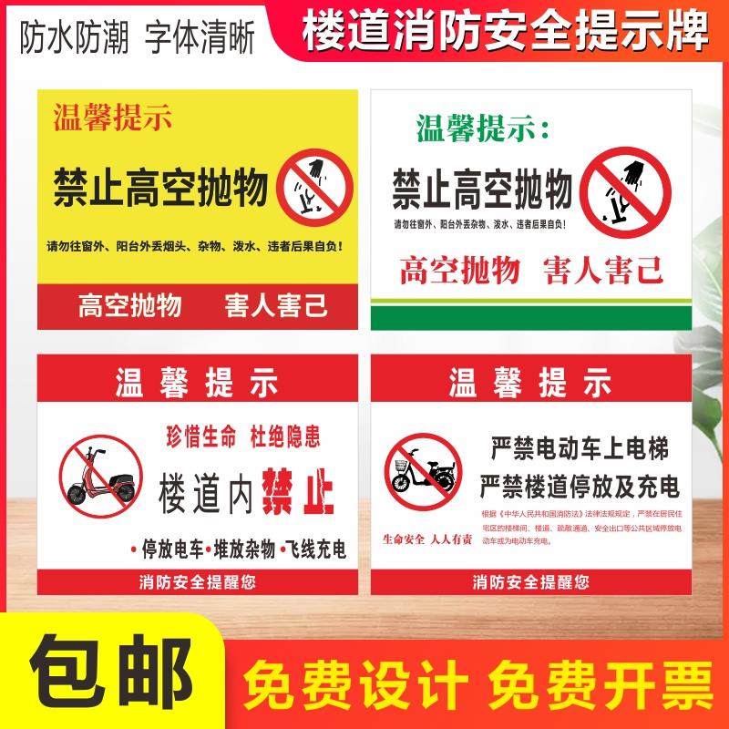 保持楼道清洁提示牌高空抛物警示楼道内禁止停放电动车堆放杂物飞线充电乱丢垃圾标识牌公共区域请勿吸烟墙贴