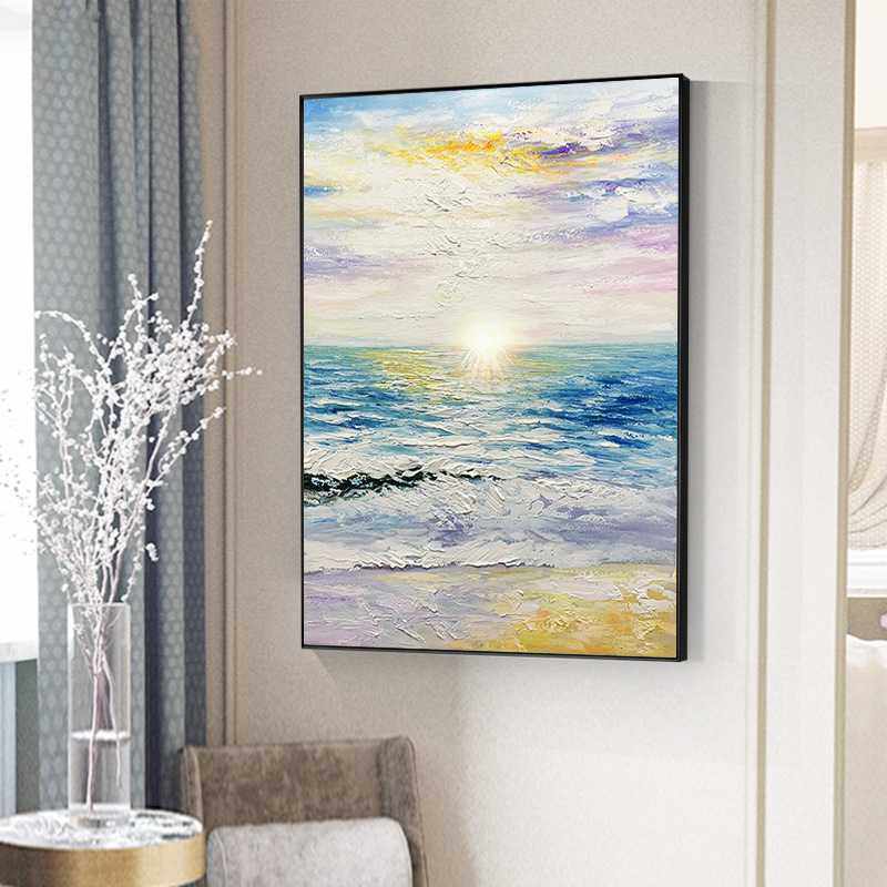 手绘油画北欧玄关客厅沙发背景墙装饰画日出云海现代餐厅挂画轻奢