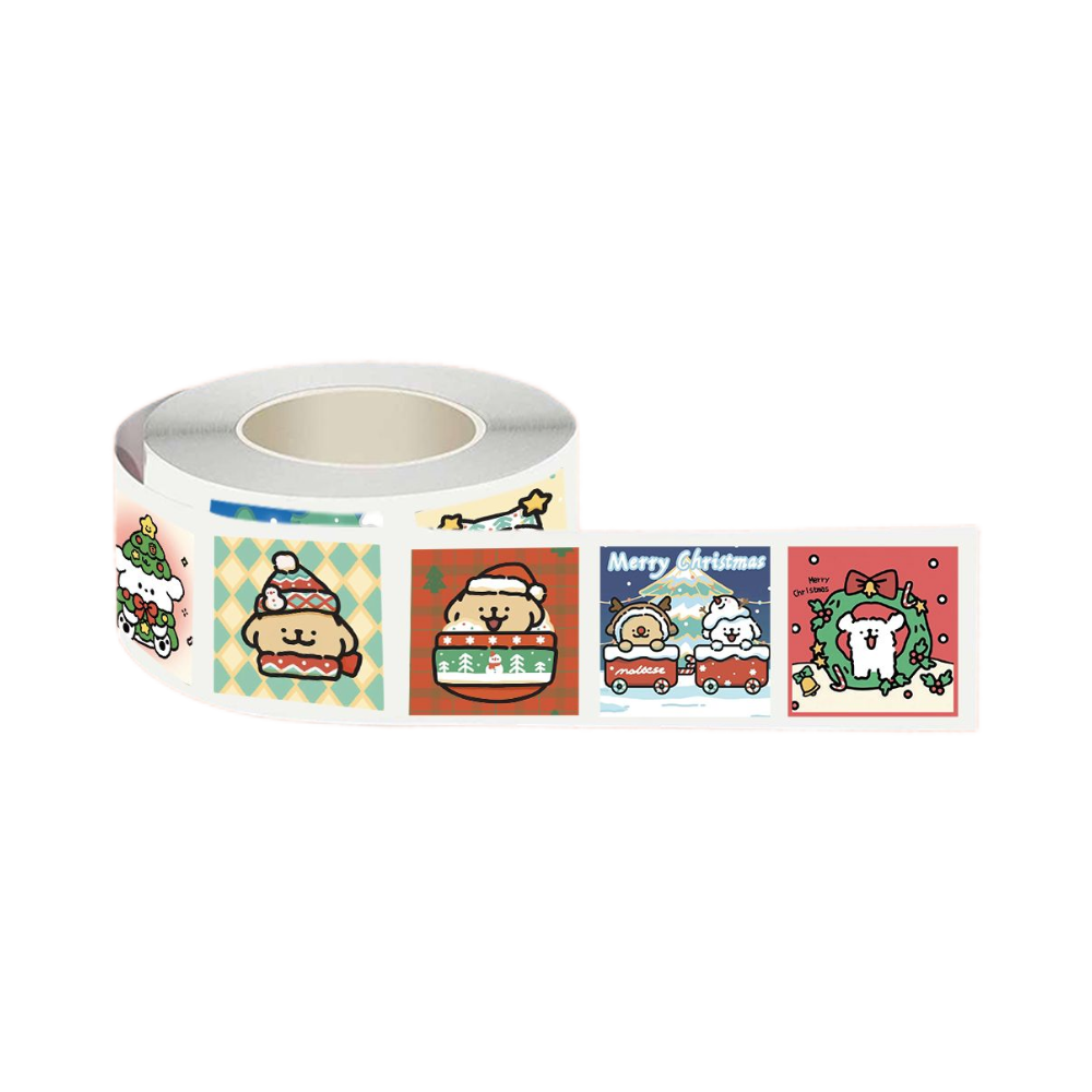 【大图释官方授权】1500贴圣诞节线条小狗卷卷贴可爱卡通节日儿童贴纸装饰DIY封口手账不干胶标签防水贴画纸