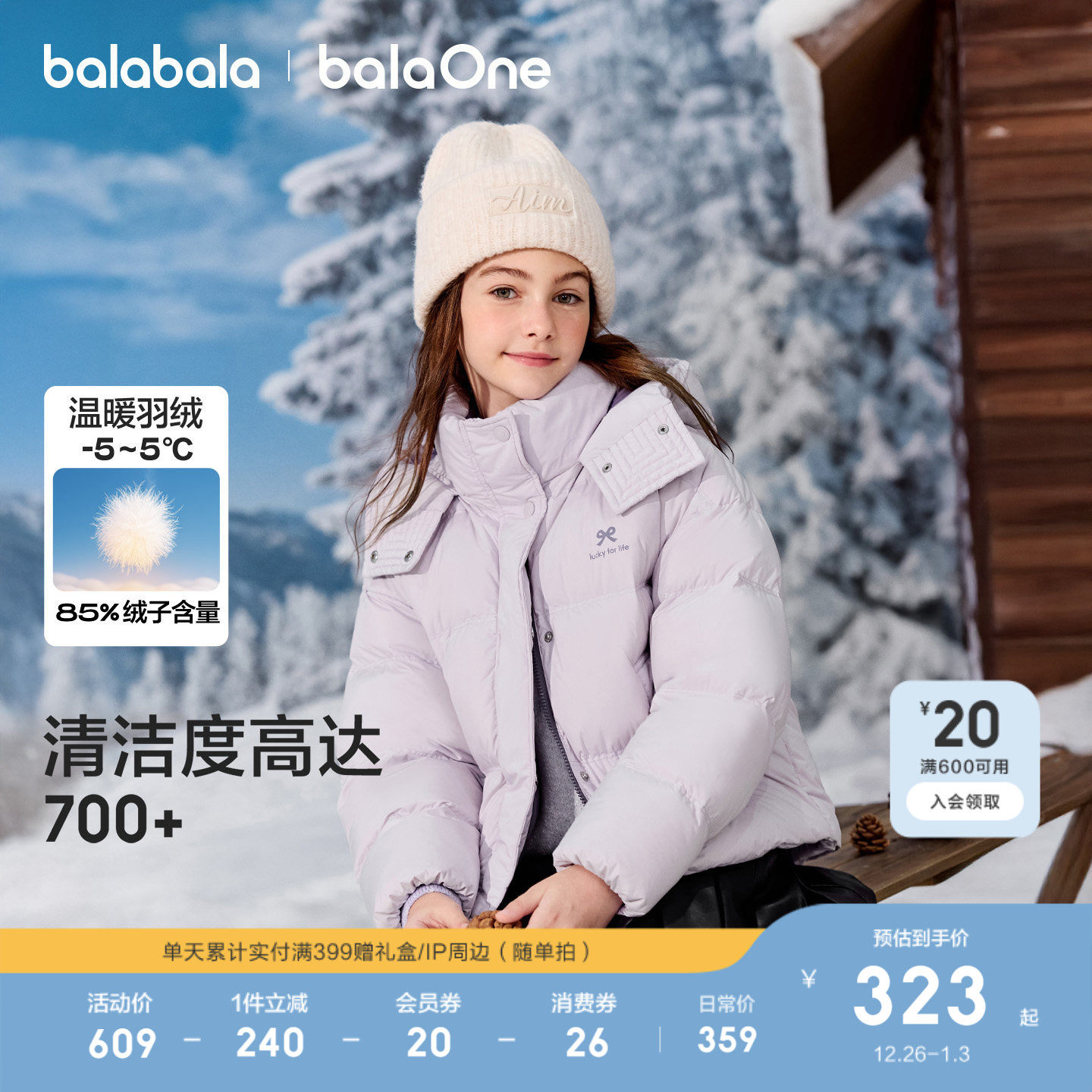 巴拉巴拉儿童羽绒服女童户外防风加厚保暖冬外套2025新款撞色上衣