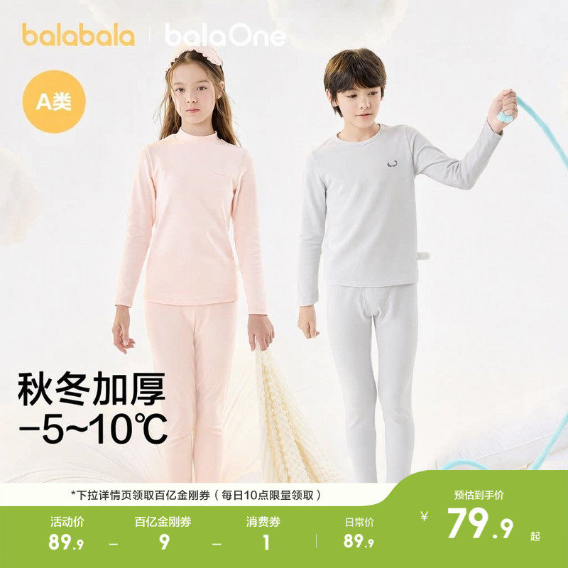 【植物芯】迷你巴拉儿童保暖内衣套装男女童家居睡衣宝宝秋衣秋裤