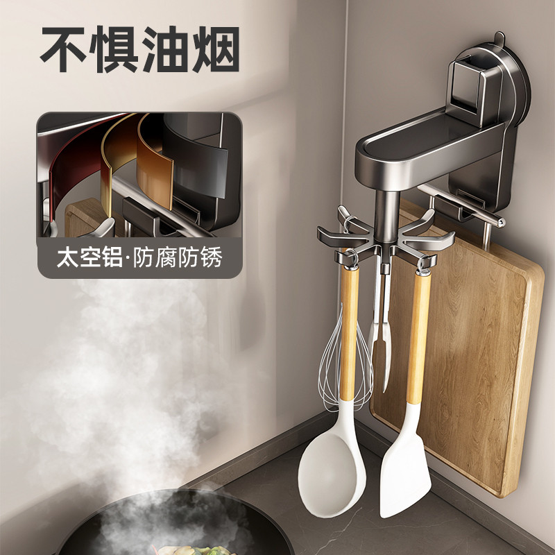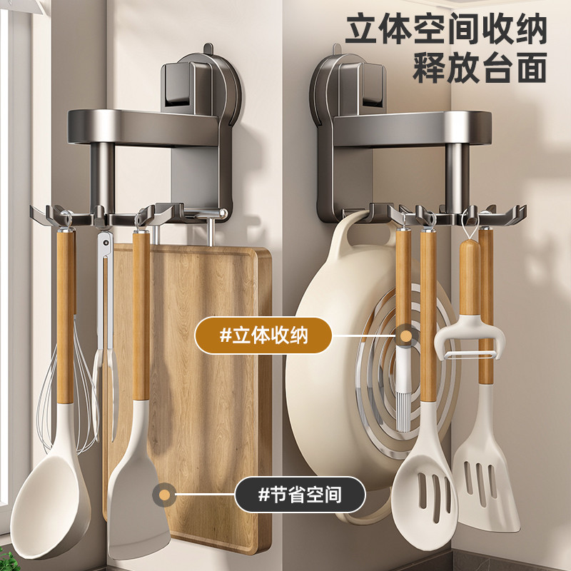 吸盘厨房旋转挂钩免打孔多功能锅铲勺子收纳架置物架台面墙面