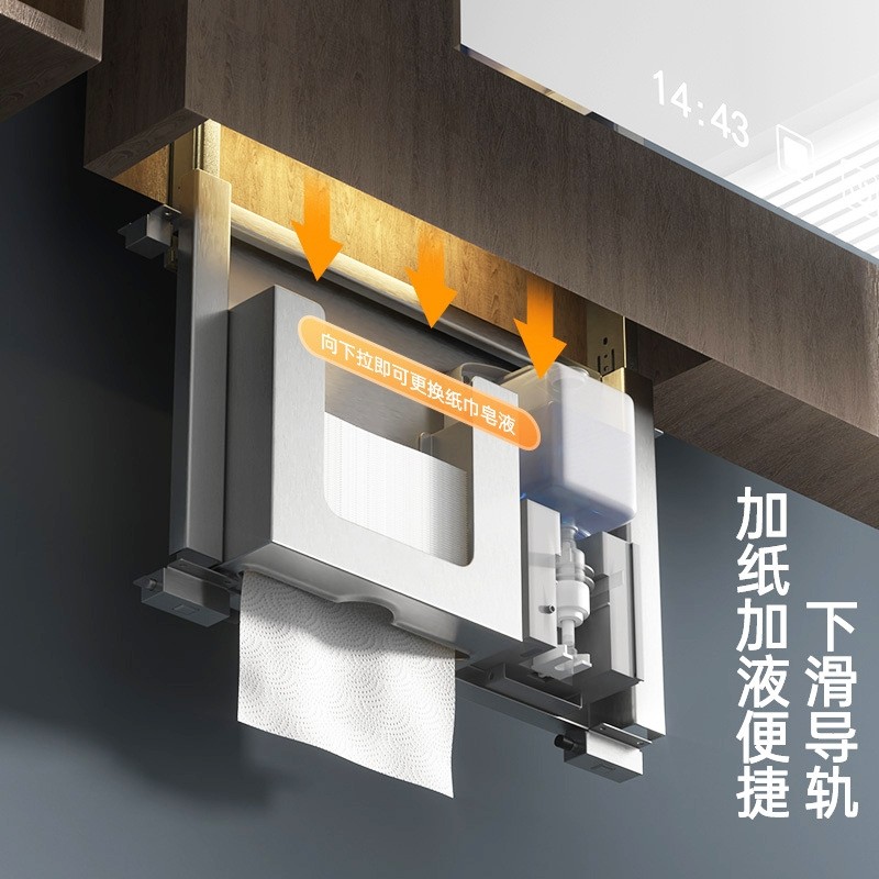镜柜后擦手纸盒感应皂液器暗藏滑轨抽纸盒卫生间镜下纸巾盒嵌入式