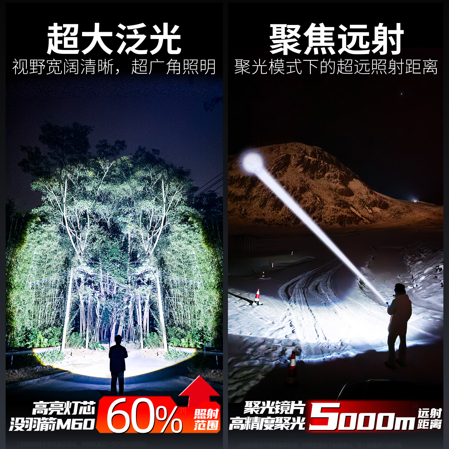 小野人手电筒2025新款强光户外充电超亮远射超长续航小型便携家用