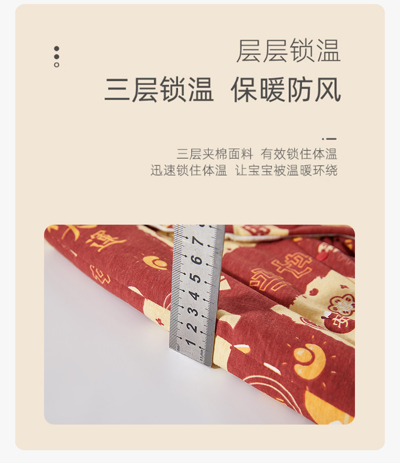婧麒新生儿婴儿衣服秋冬夹棉满月纯棉初生宝宝秋装连体衣a类爬服
