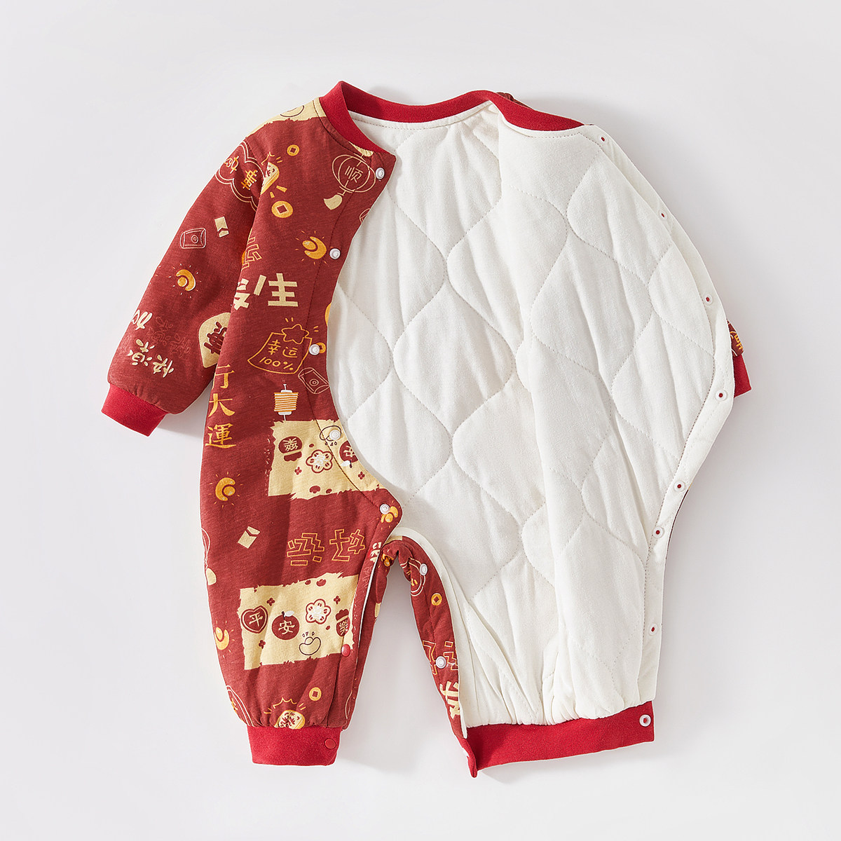 婧麒新生婴儿红色过年喜庆衣服秋冬款连体衣新款宝宝满月宴拜年服